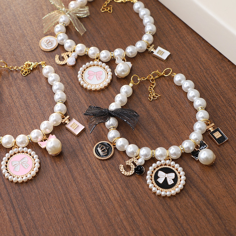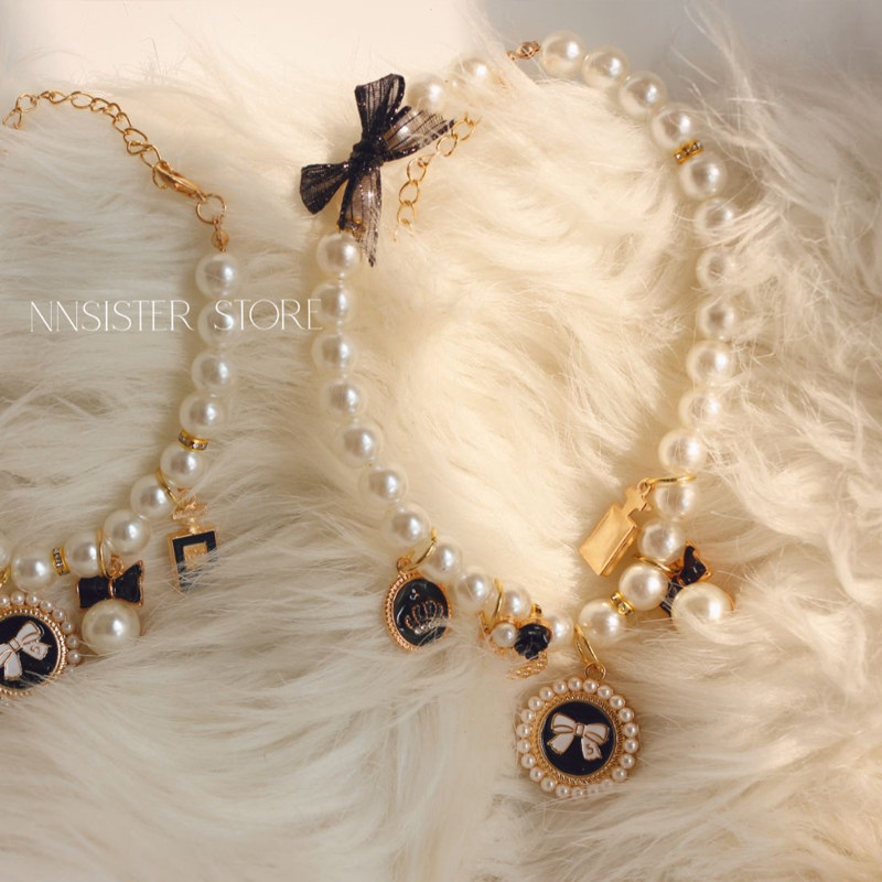 📚 猫咪蕾丝蝴蝶结项圈小狗狗挂坠珍珠项链布偶猫德文猫专用脖圈装饰