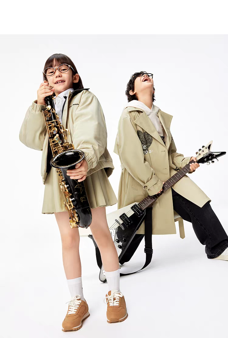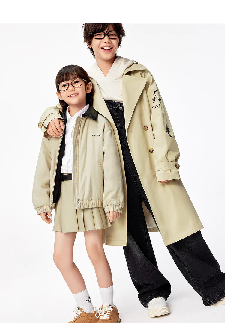 📚 little moco童装25春季男女童纯棉中长款翻领风衣外套 KBE1TRC001