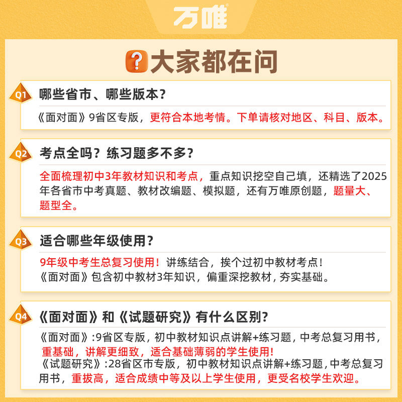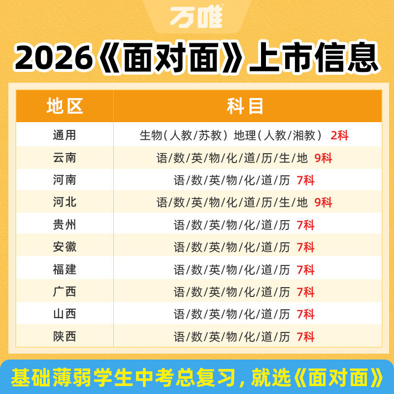 📚 2026新版万唯中考初中总复习语文数学英语物理化学道法政治历史生物地理会考面对面初二一轮复习七八年级练习册万维教育官方旗舰店