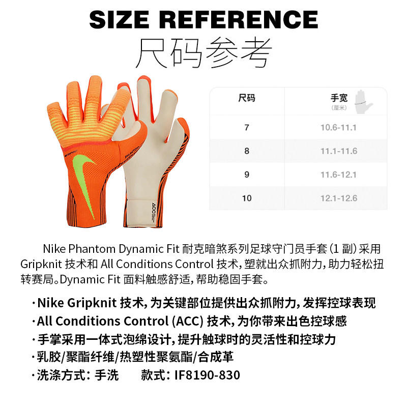 📚 酷锐足球耐克高端比赛训练防滑耐磨足球守门员门将手套IF8190-830