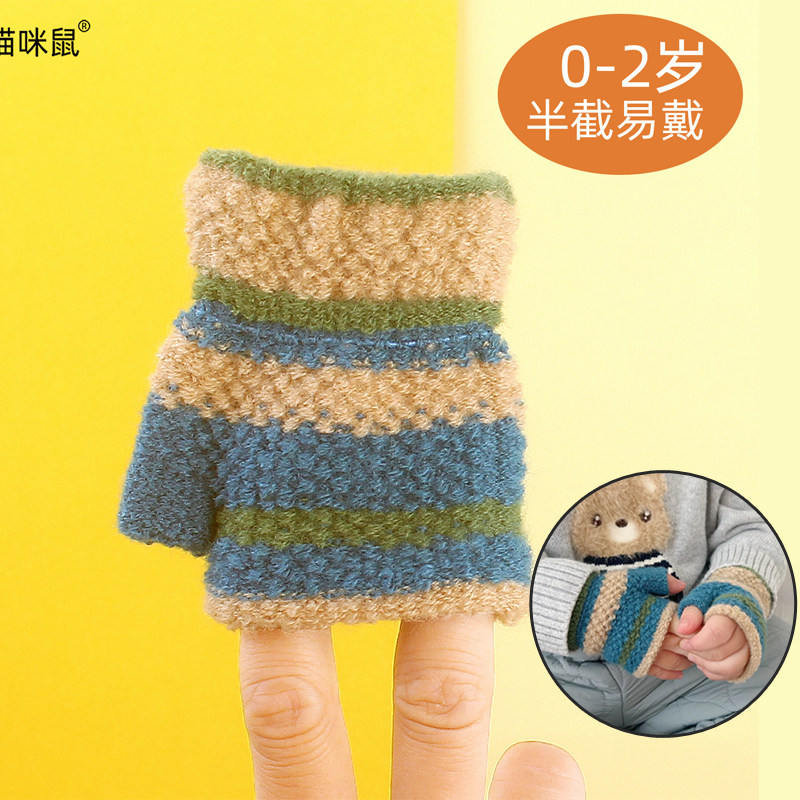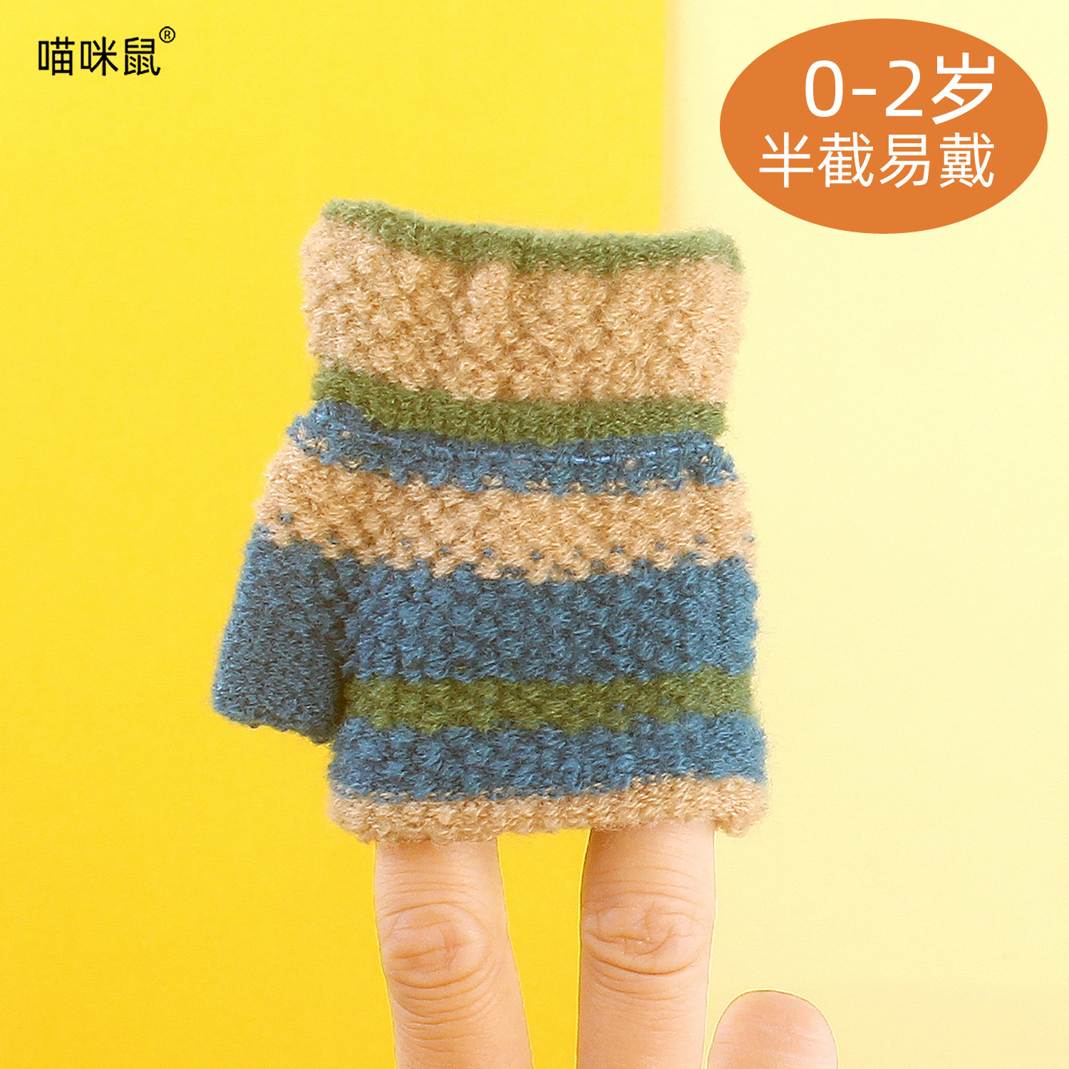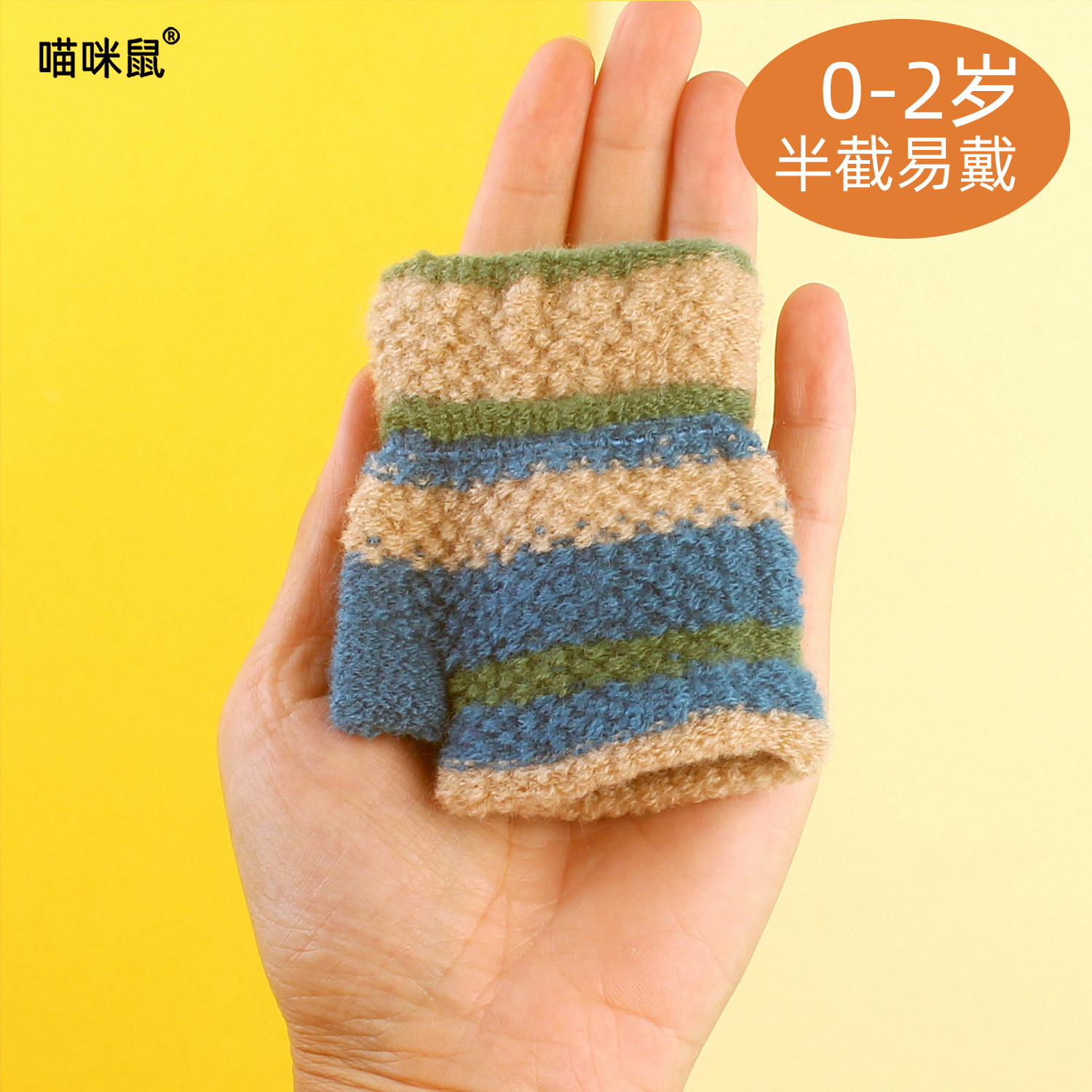 📚 婴儿手套薄秋冬季半截半指连指0-2岁宝宝爬行玩耍幼儿童针织毛线