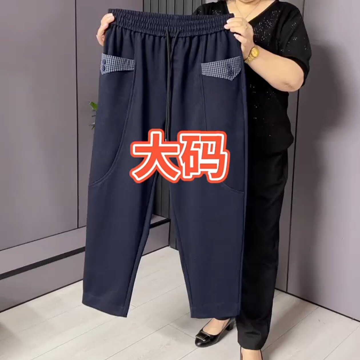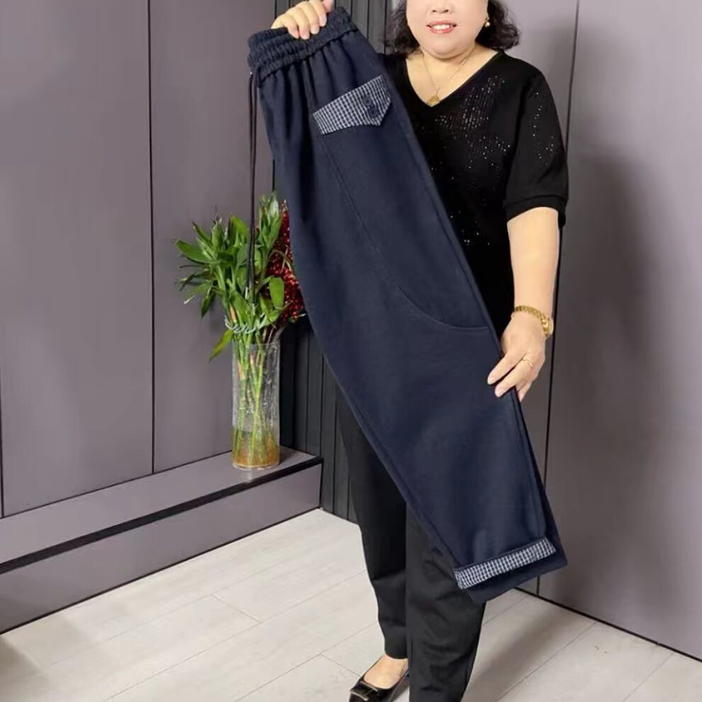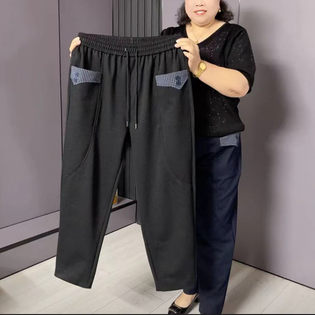 📚 2025秋季新款胖妹妹加肥加大码松紧腰口袋弹力休闲牛仔哈伦裤子女