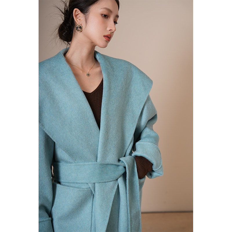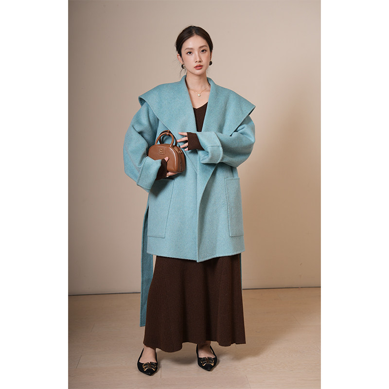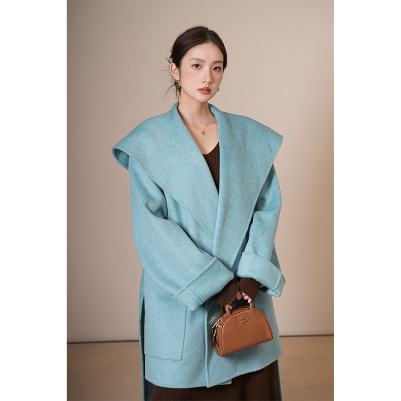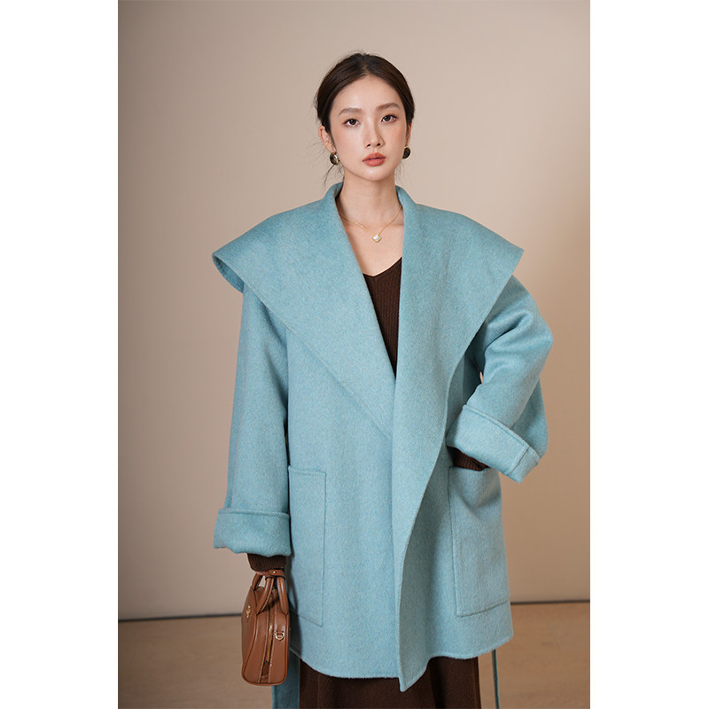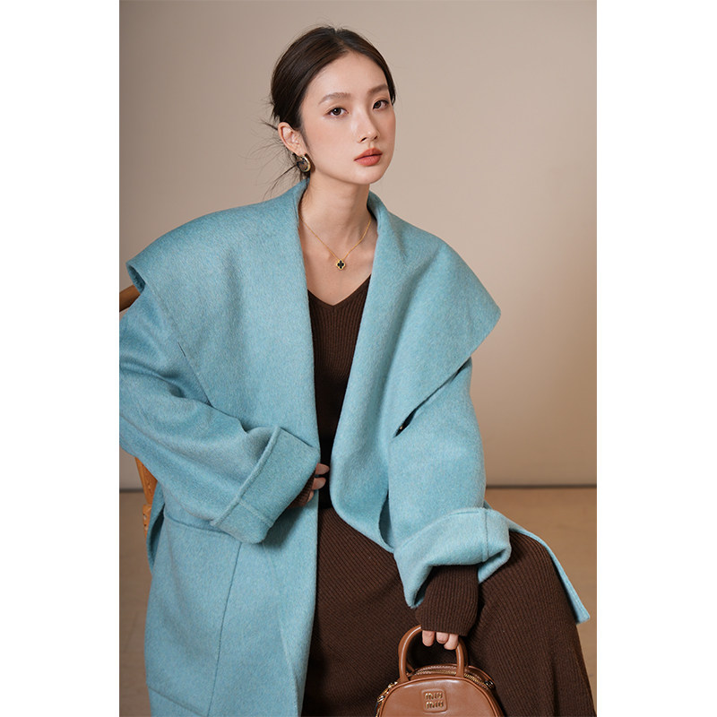 📚 竹依依高端大翻领蓝色双面羊绒大衣女短款2025新款纯羊毛呢外套冬