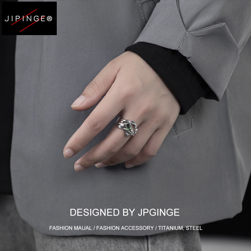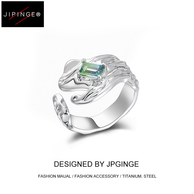📚 JIPINGE s925纯银宝石带钻男女学生复古简约百搭异形锆石开口戒指