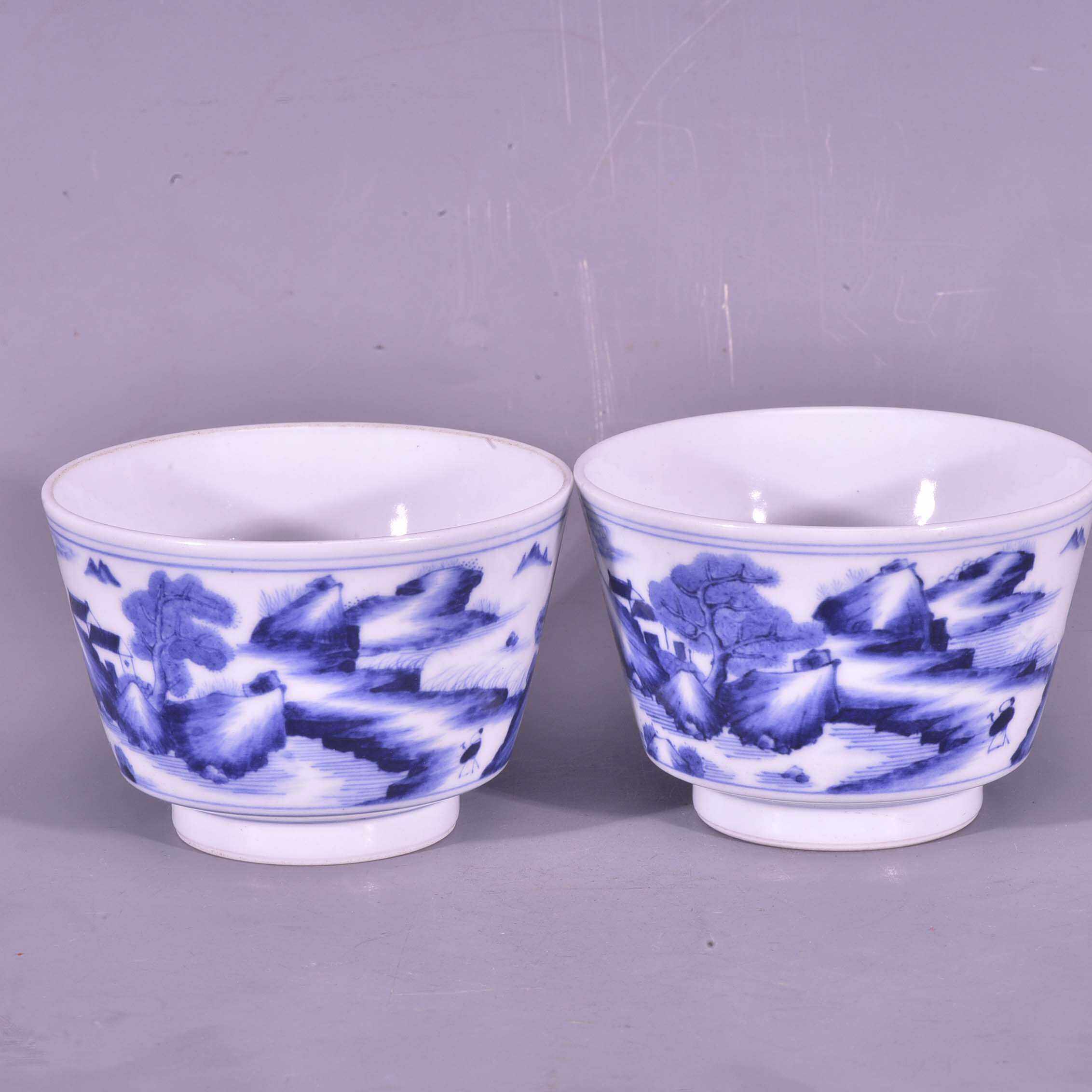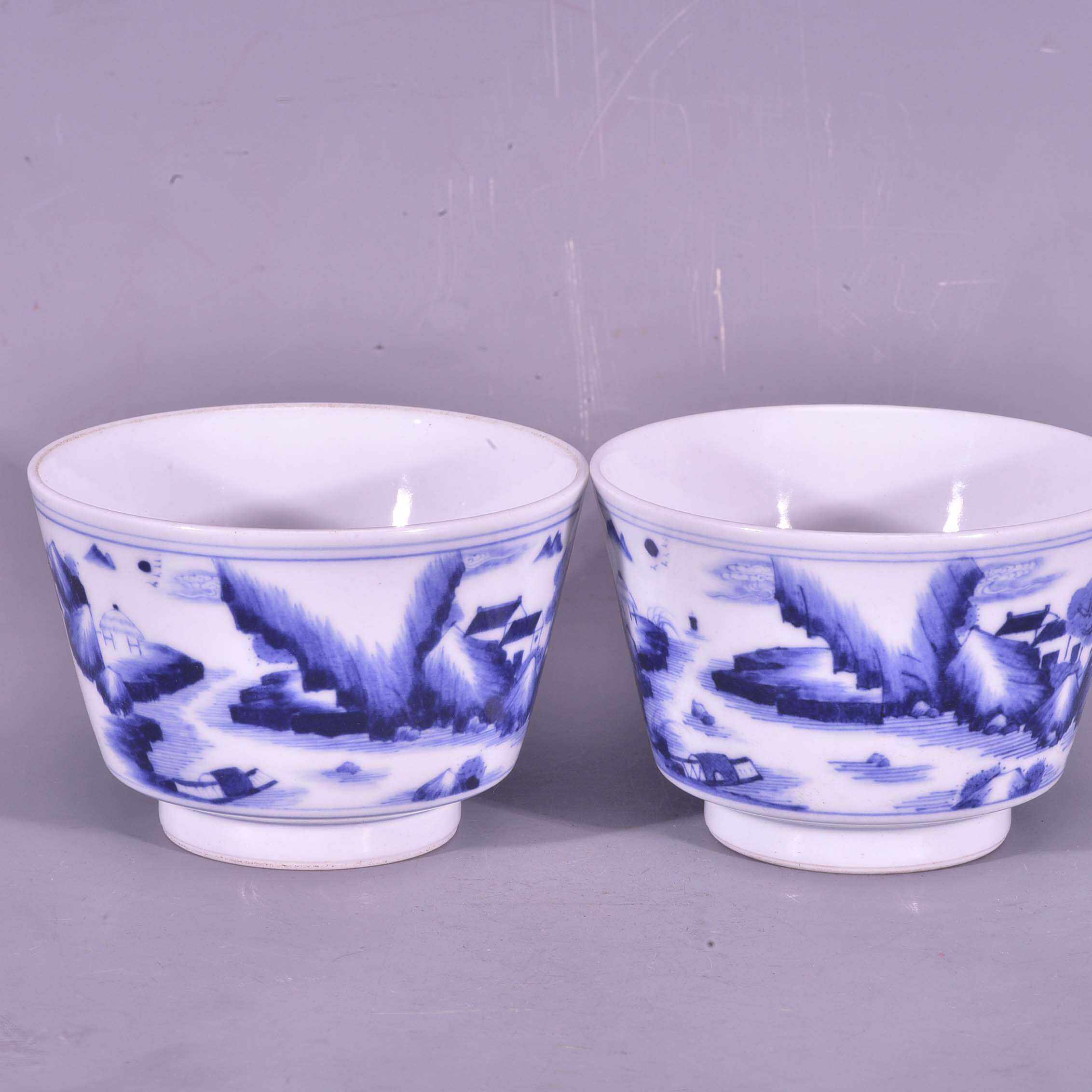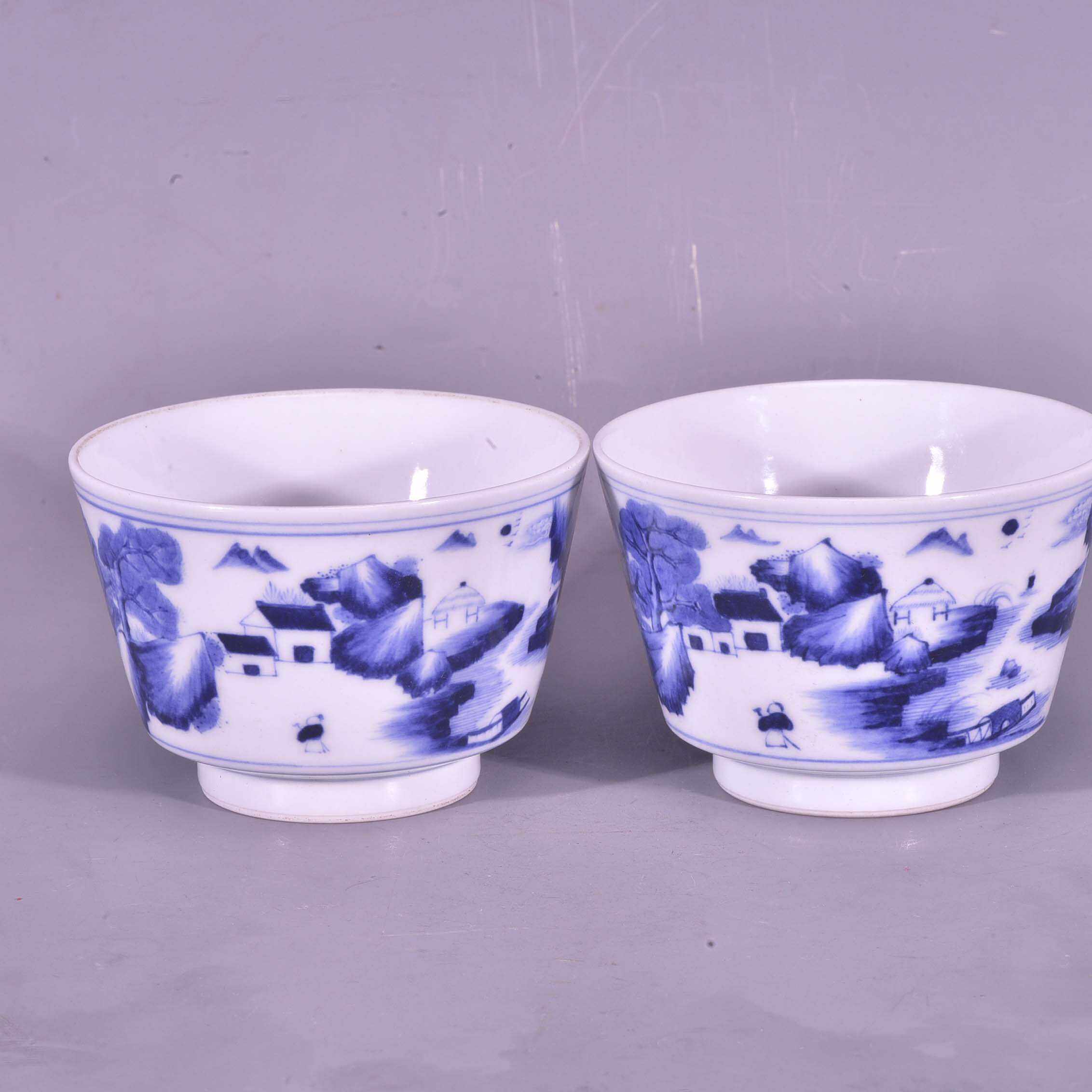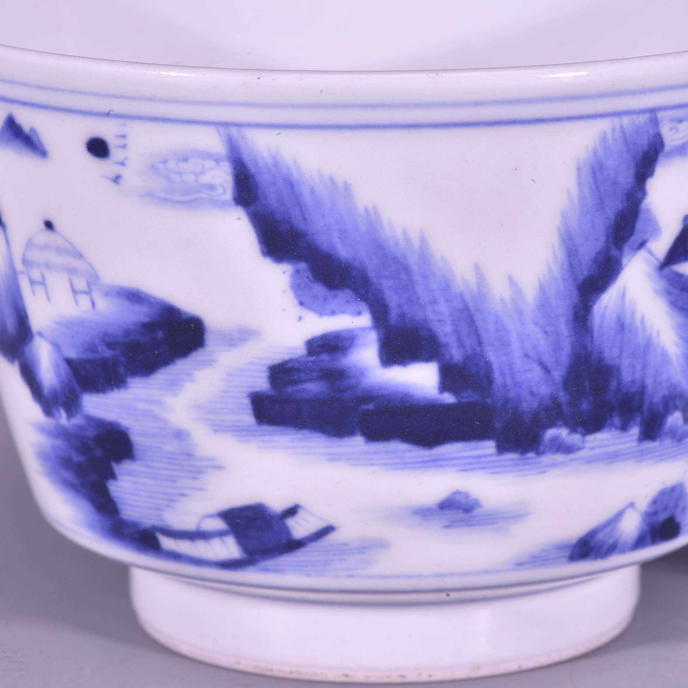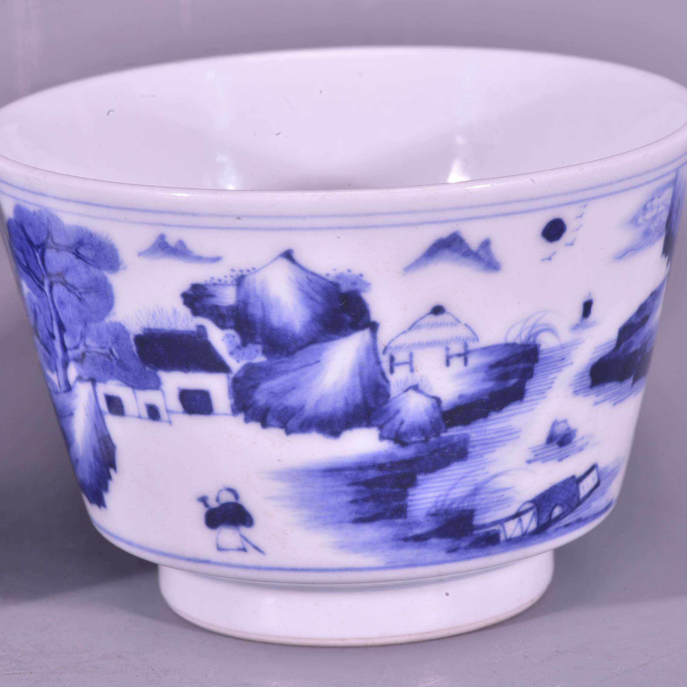 📚 大清雍正御用谦斋款青花高士图山水纹马蹄酒杯茶杯