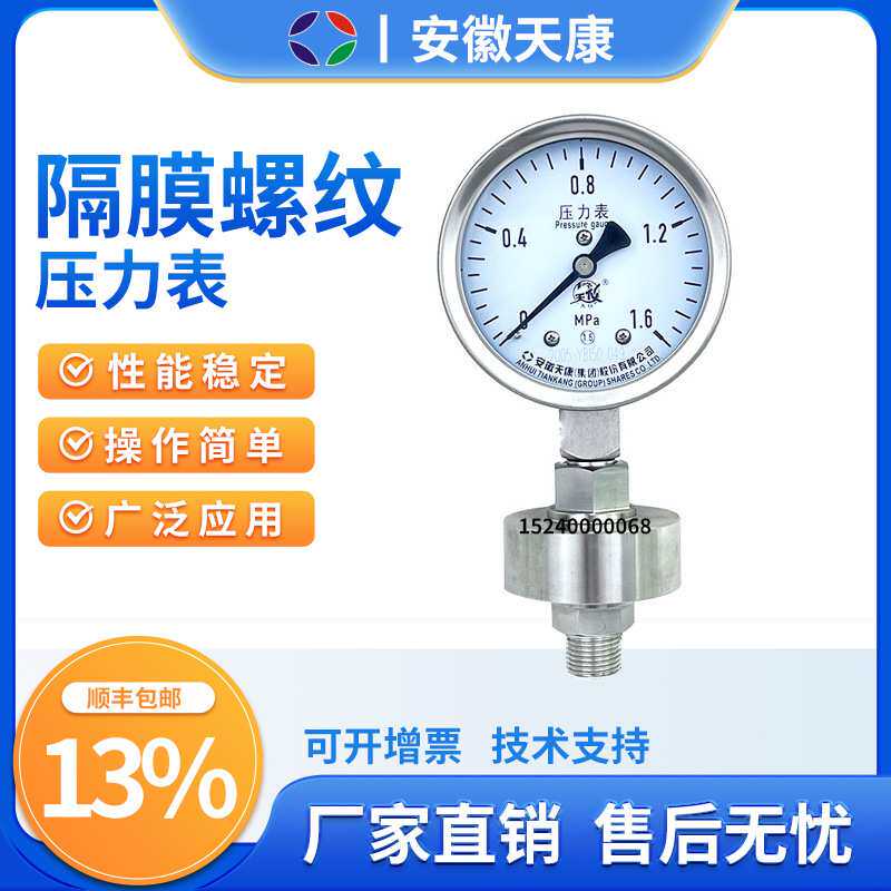 📚 安徽天康压力表不锈钢隔膜压力表YML-100B耐震液压表真空压力表