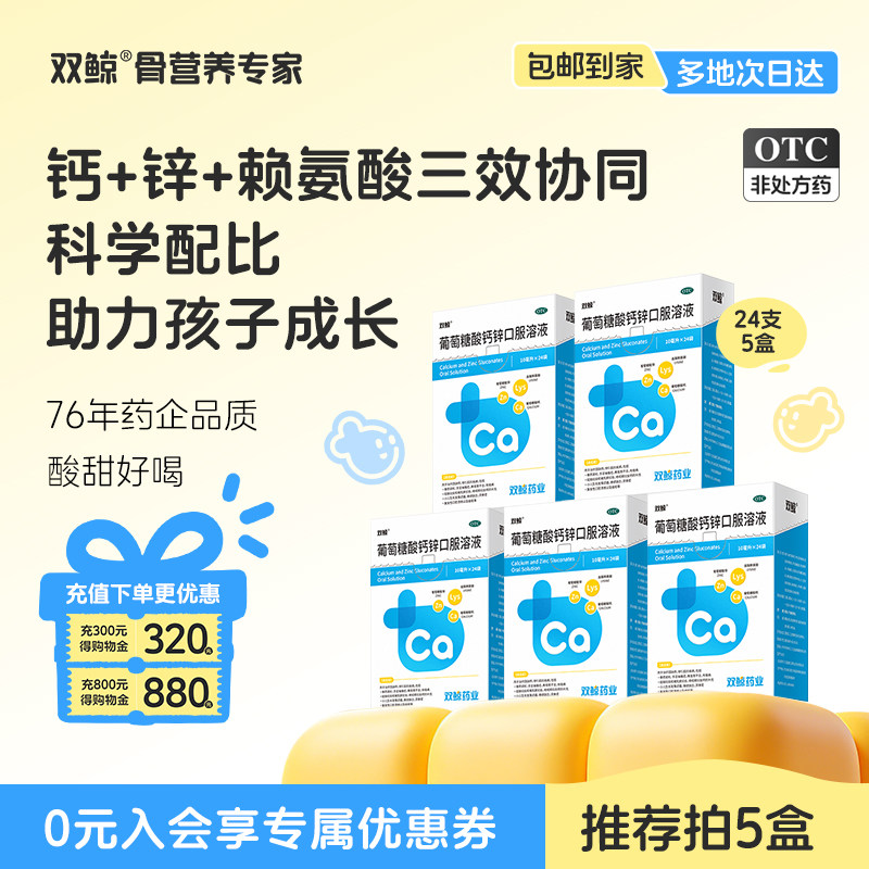 📚 助长高双鲸葡萄糖酸钙锌口服溶液赖氨酸非铁婴幼儿童液体钙小鲸条