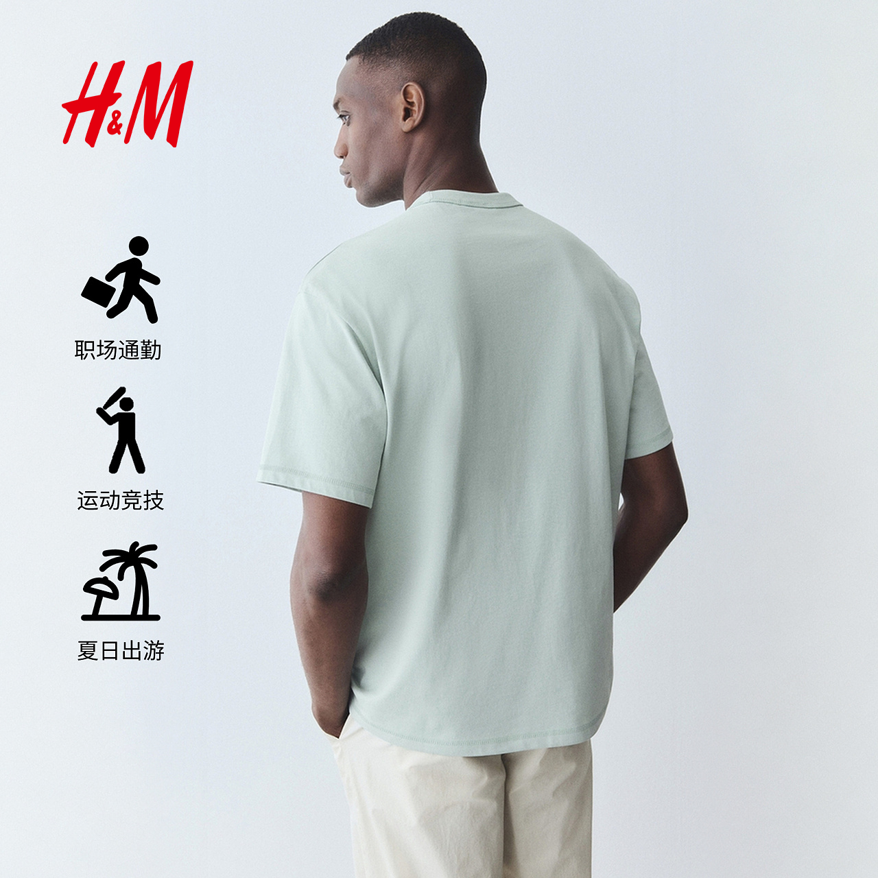 📚 HM男装女装T恤春季透气凉感COOLMAX®休闲柔软圆领短袖0948441