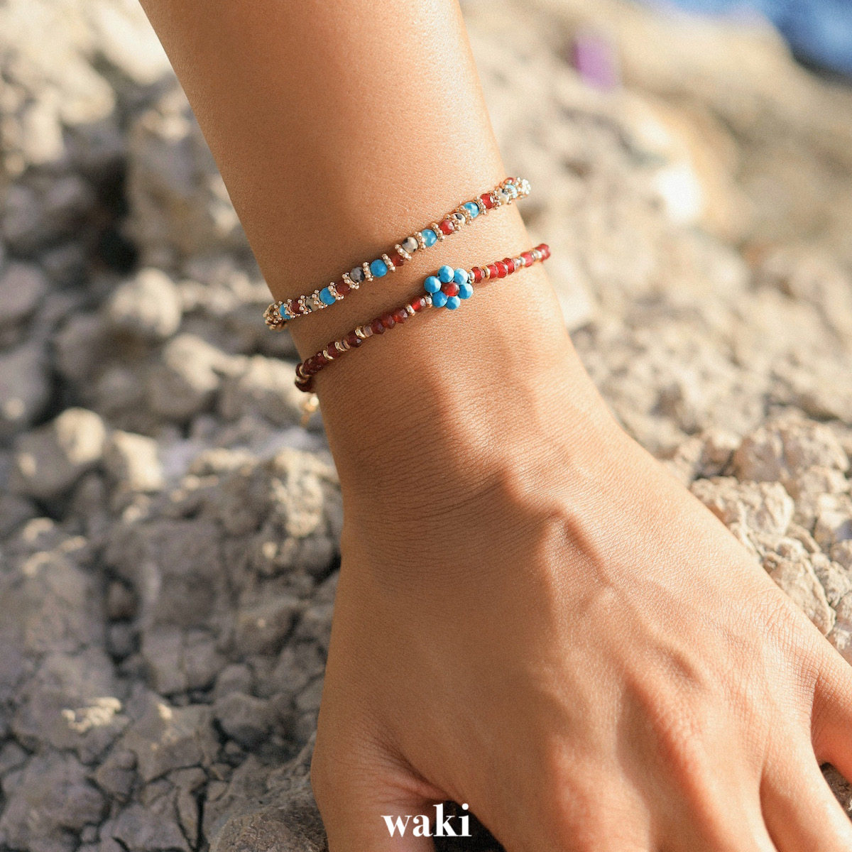 📚 waki 石榴冰茶 Pomegranate Ice Tea 小花串珠手链套组两条入
