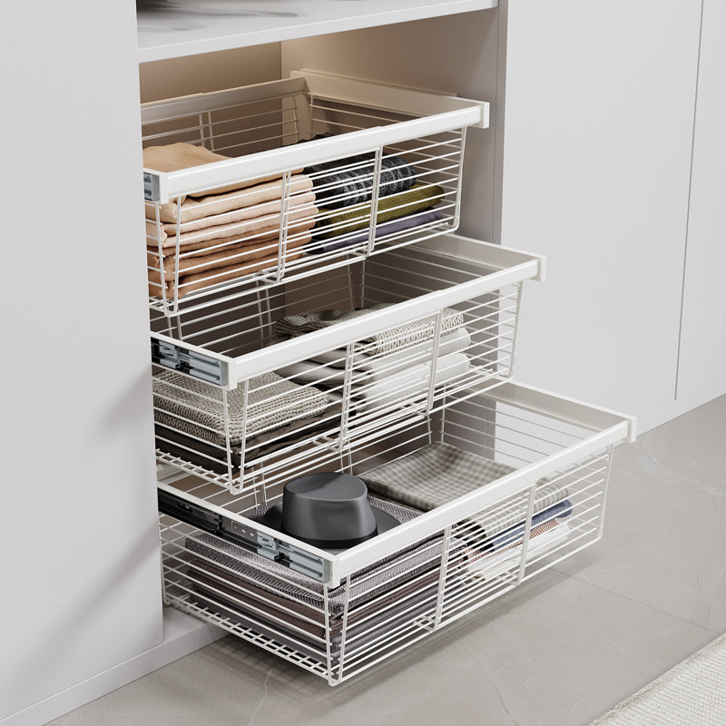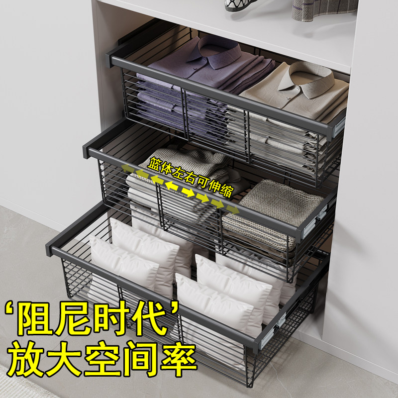 📚 衣柜拉篮抽屉式伸缩带滑轨衣橱帽间分层内部改造收纳抽拉裤架滑轨