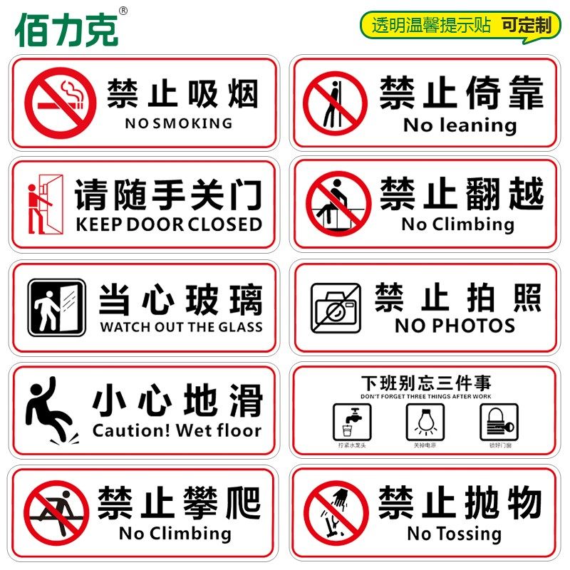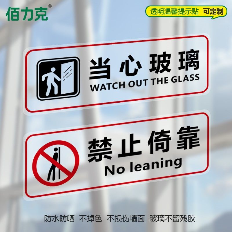 📚 透明温馨提示玻璃贴小心地滑禁止翻越禁止倚靠提示贴酒店安全淋浴间浴室防水商场超市餐馆当心玻璃贴标识贴纸