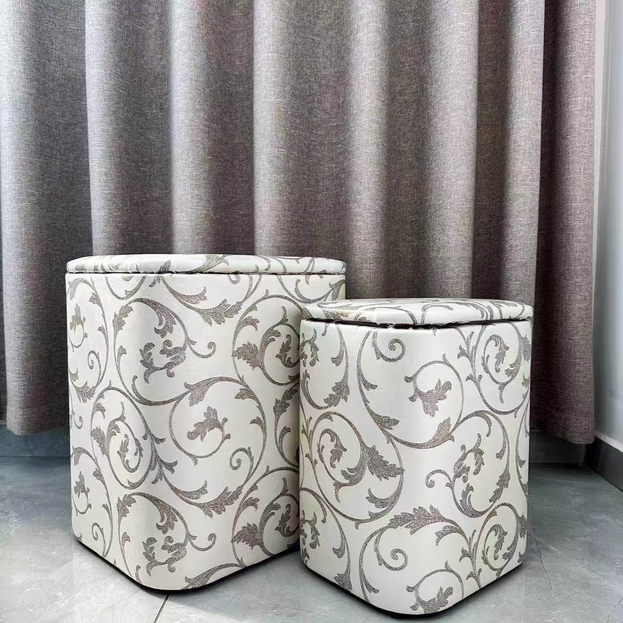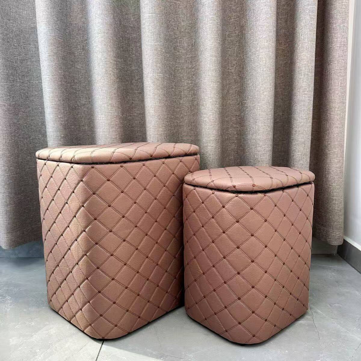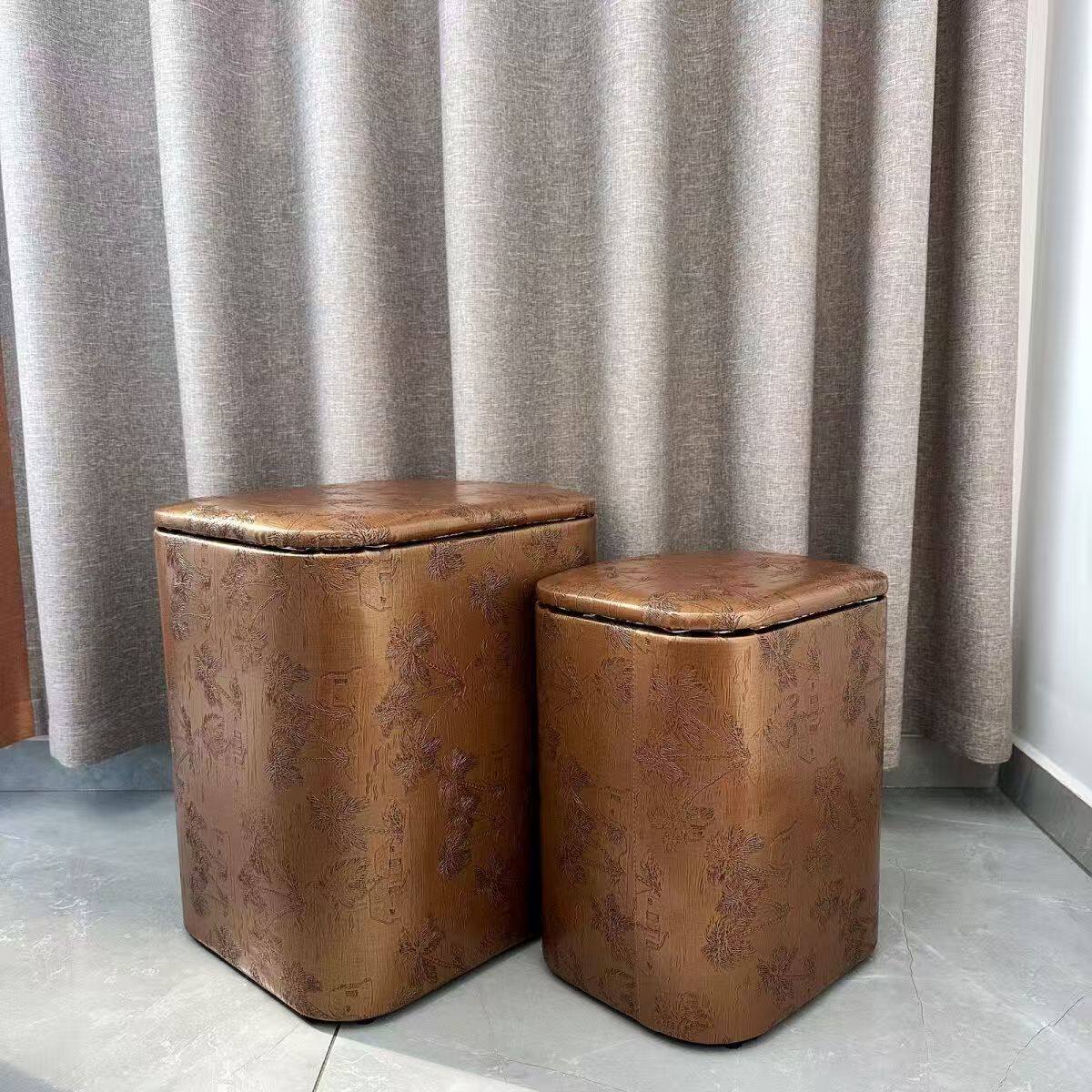 📚 名品御草居北欧风皮革收纳凳手工花纹储物凳客厅多功能凳子