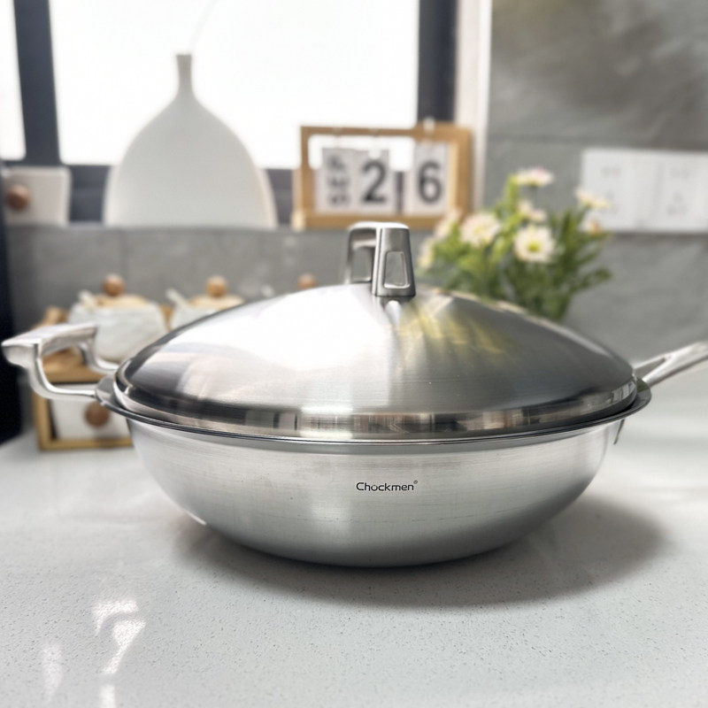 📚 【卓德铭】5层钢夹铜32cm炒锅18/10不锈钢无涂层炒菜锅物理不粘锅