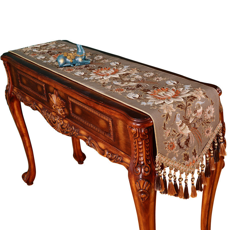 📚 欧式布艺桌旗现代简约餐桌垫桌布茶几桌巾美式电视柜奢华刺绣桌旗