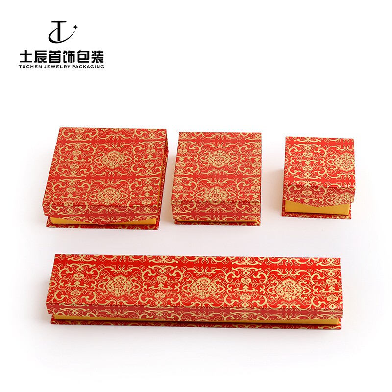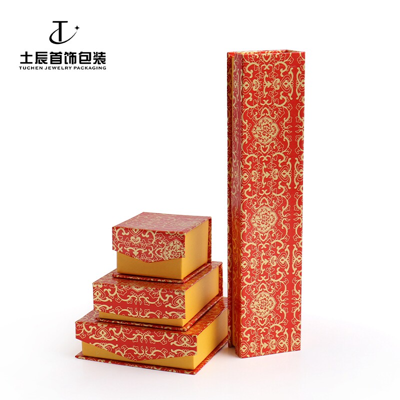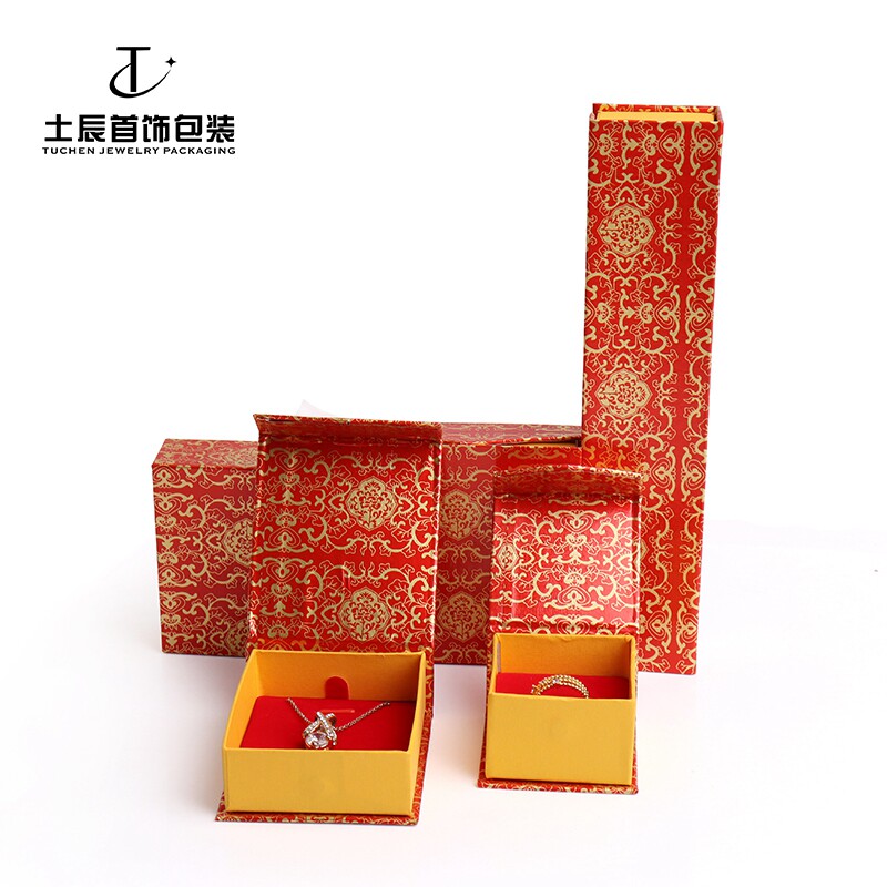 📚 08红色首饰盒红金花前磁铁包装戒指吊坠手镯项链收纳纸盒子礼品盒