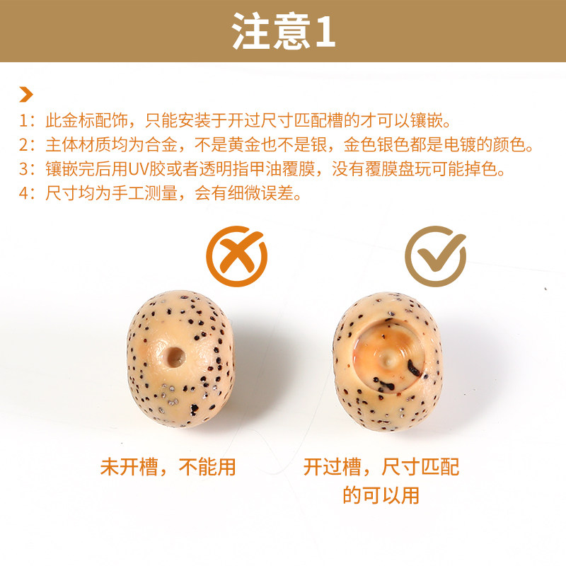 📚 文玩手串猴头镶嵌金标银标金钉配饰配件材料星月凤眼核桃封底DIY