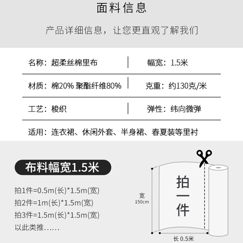 📚 超柔丝棉里衬薄款布料服装外套裤子雪纺连衣裙旗袍内里微弹布面料