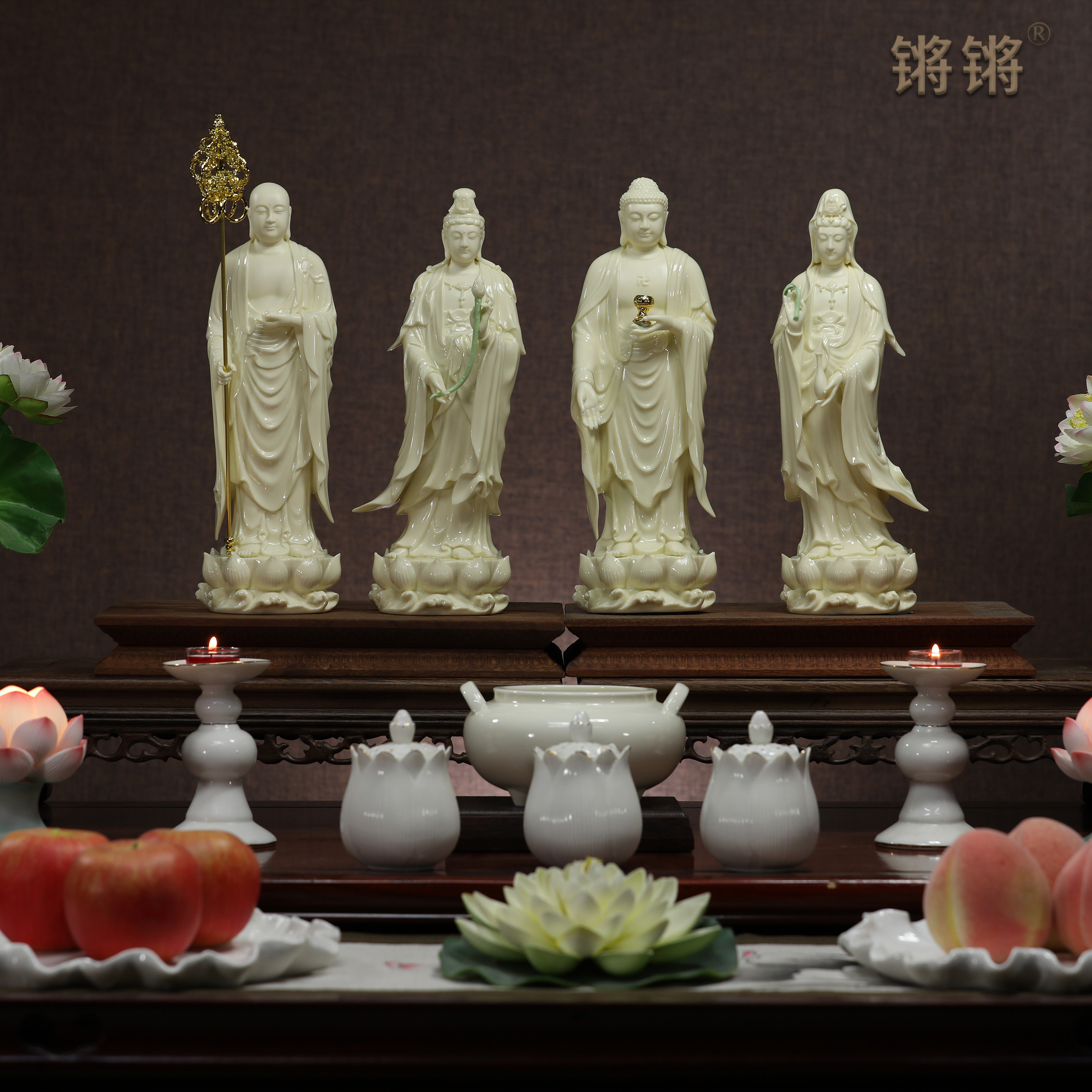 📚 锵锵12寸立莲四圣像如来观音地藏大势至西方三圣家用佛像供奉摆件