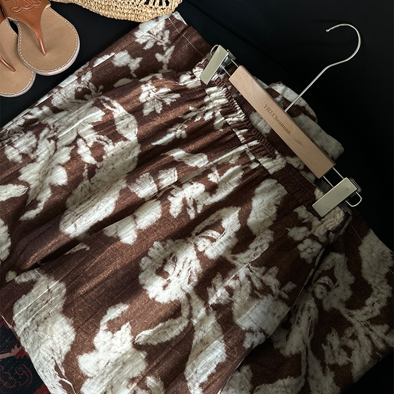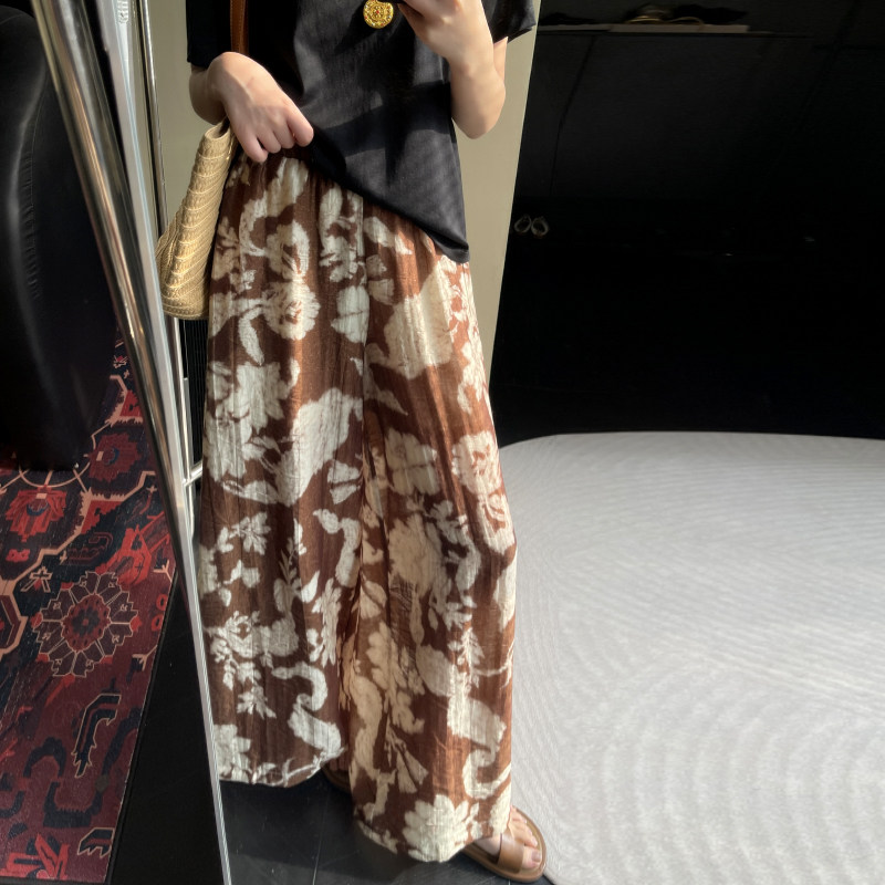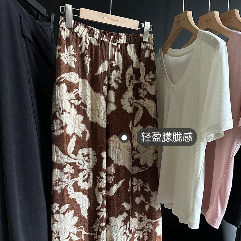 📚 YH2.Chennnnn 轻盈朦胧感复古印花宽松阔腿裤女显瘦高腰拖地长裤