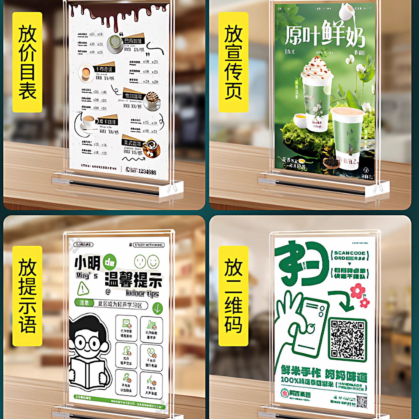 📚 压克力板台卡展示牌A4桌牌立牌双面展示架订做透明广告牌A3菜单水牌桌牌美容院定制价格标价订台牌a5桌面摆台