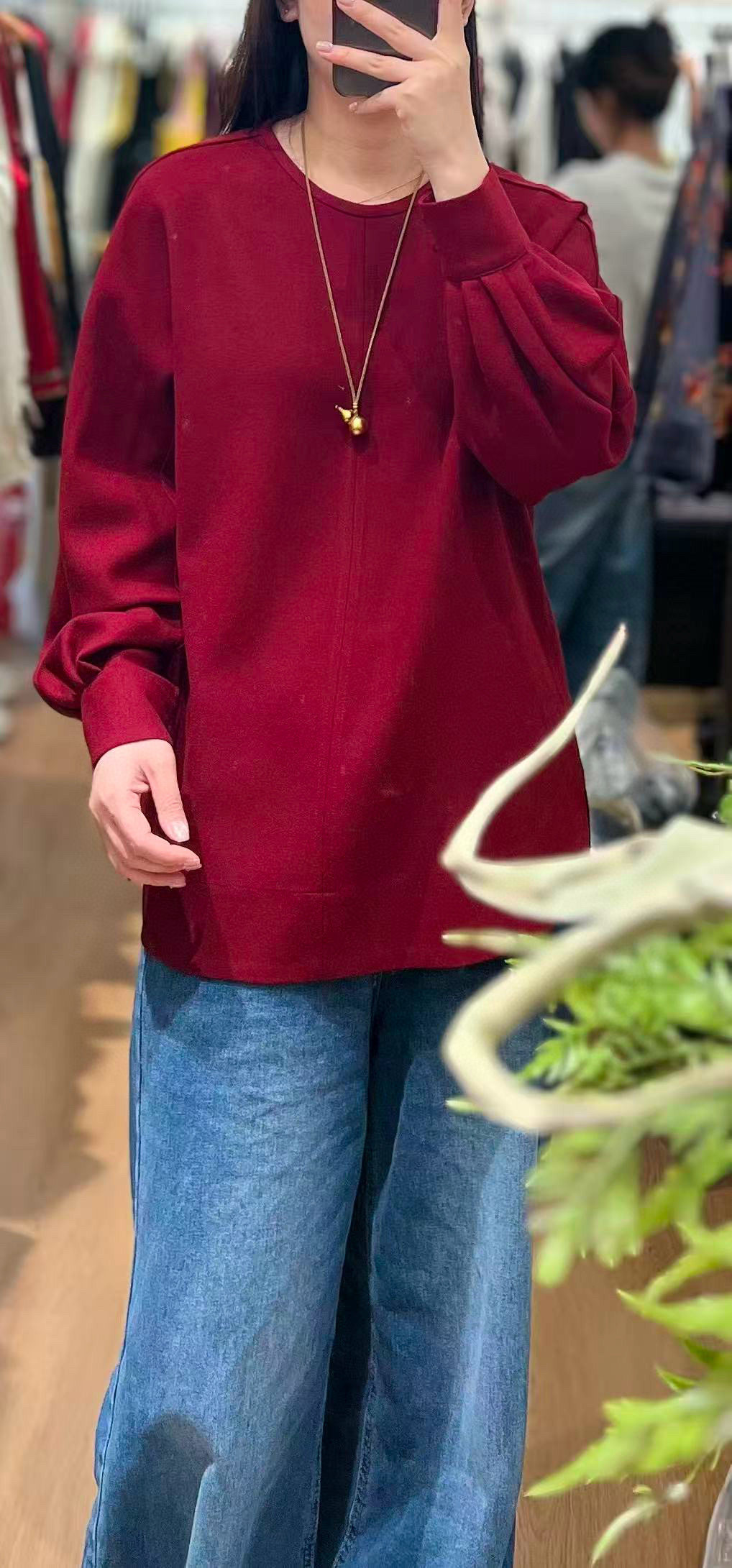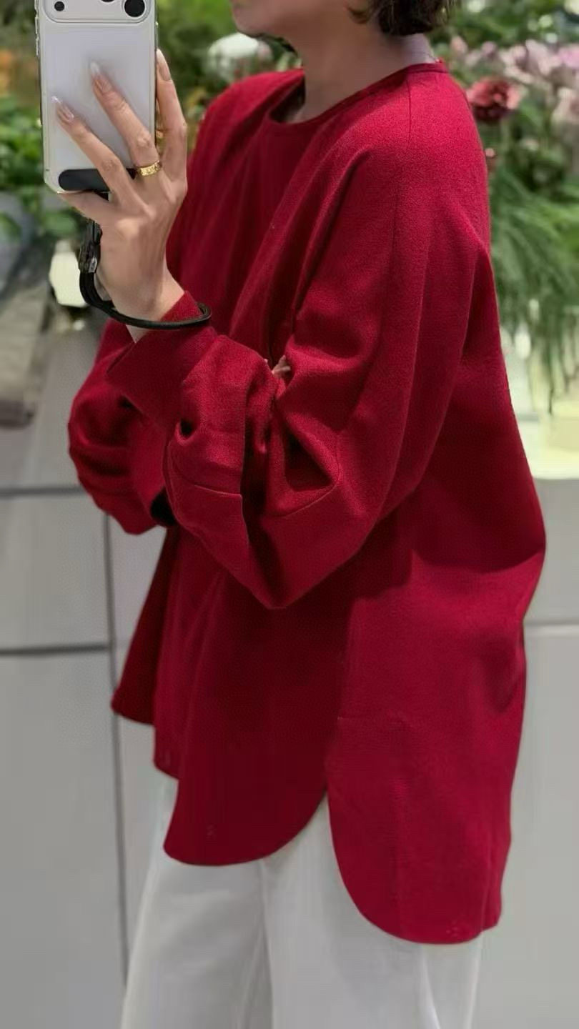 📚 羊毛打底衫圆领前短后长羊毛宽松休闲衬衫上衣