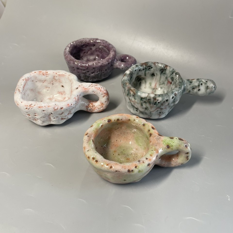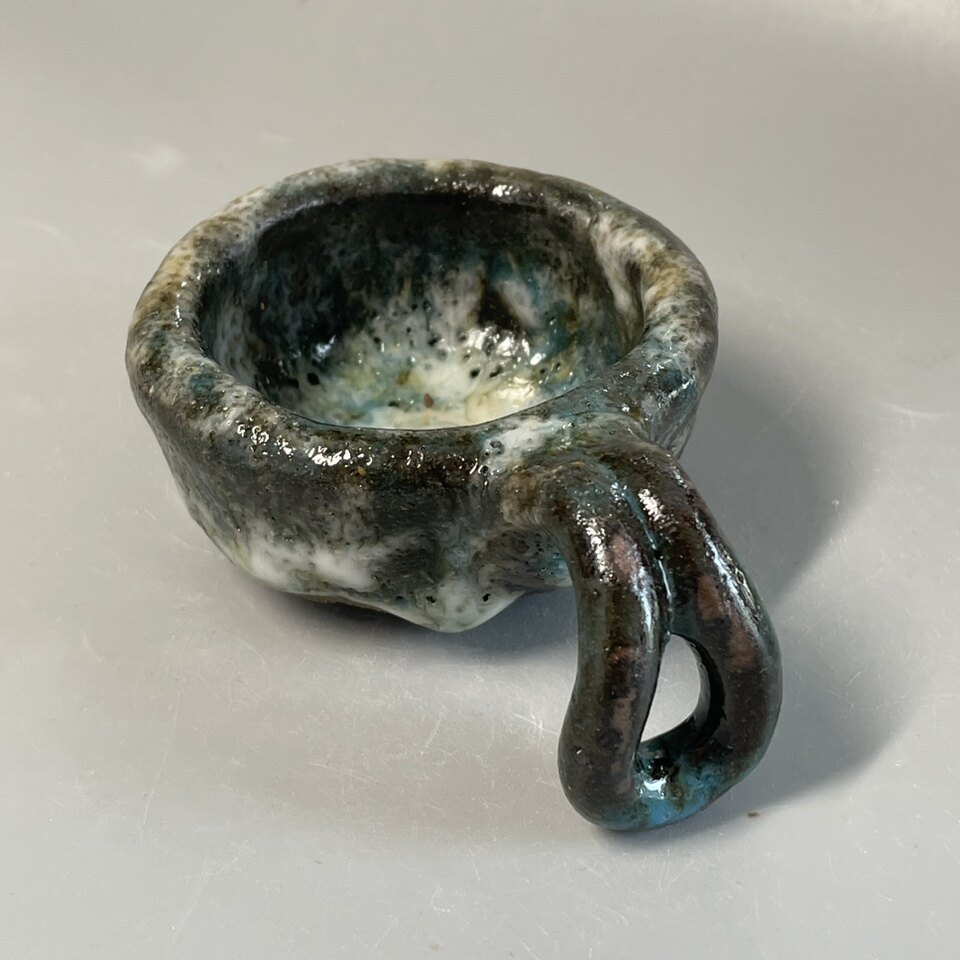 📚 nini志野烧小茶杯手工创意日式清酒高温柴烧灰釉把手茶具冰裂开片
