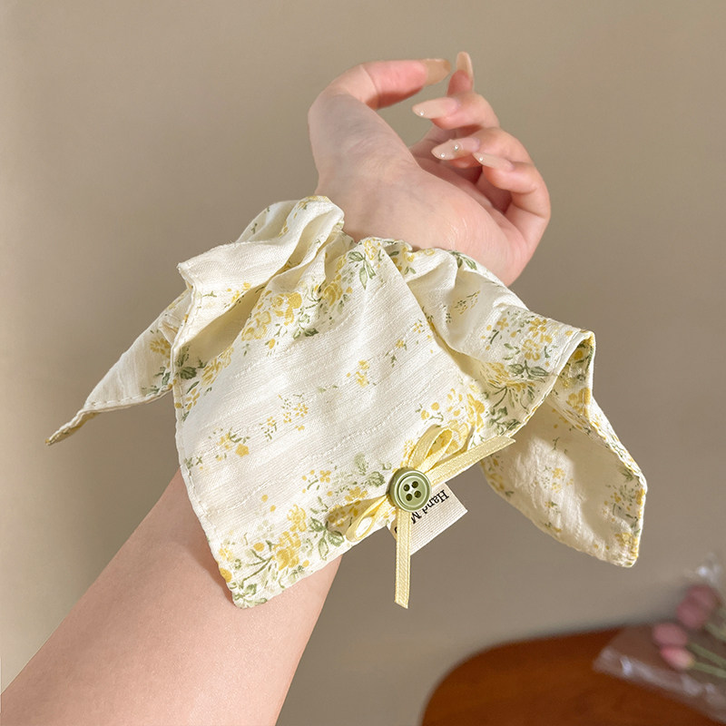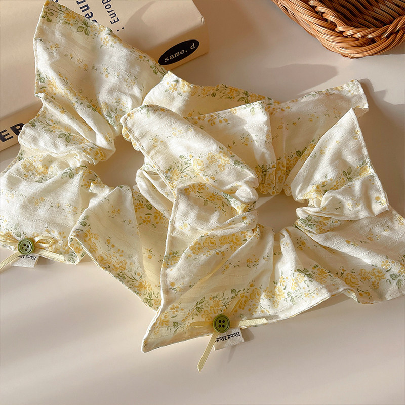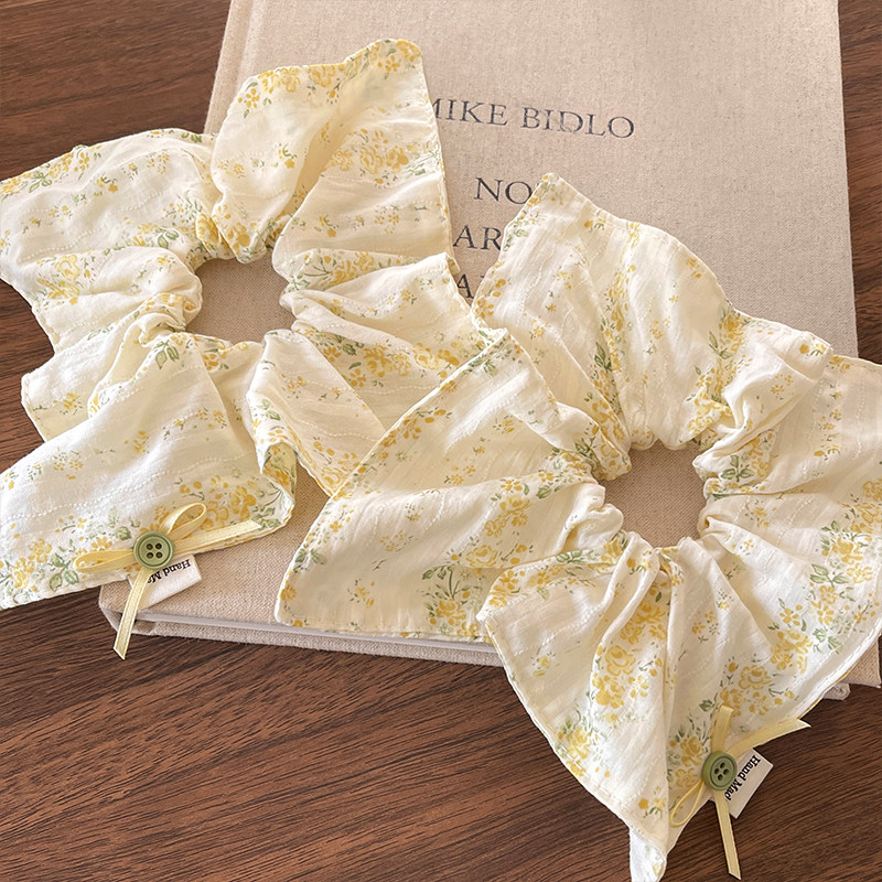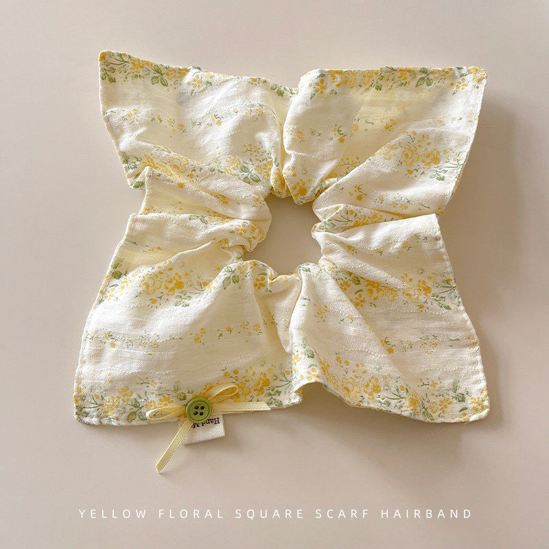 📚 森系黄色碎花方巾大肠发圈女2026新款低马尾发绳甜美小清新扎头绳