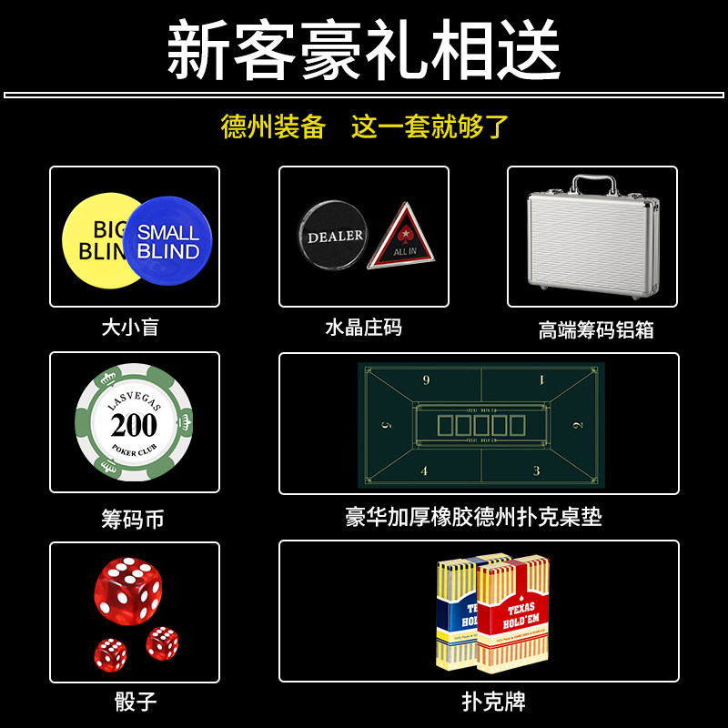 📚 德州扑克筹码套装皇冠黏土高端麻将棋牌室专用筹码币箱百家乐桌布