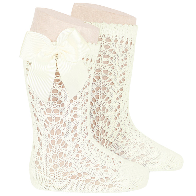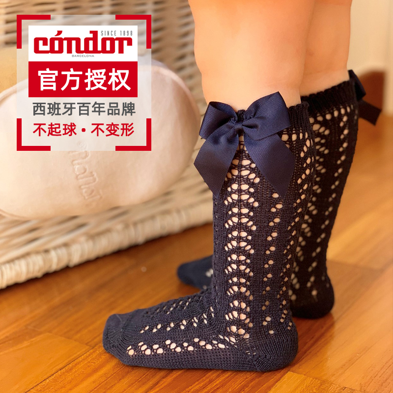 📚 现货西班牙Condor女童夏薄镂空蝴蝶结中筒袜宝宝纯棉透气网眼袜子