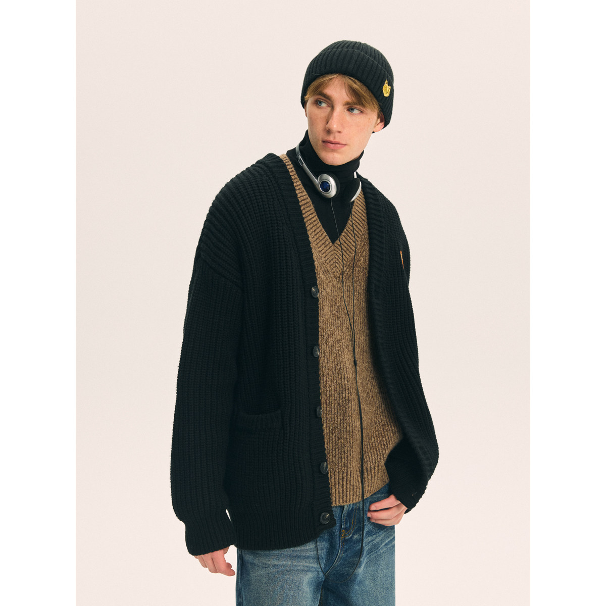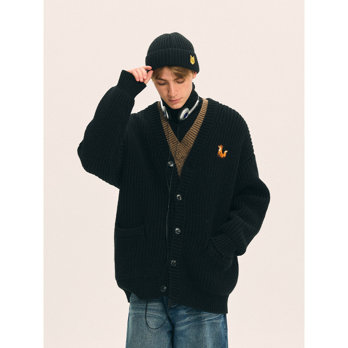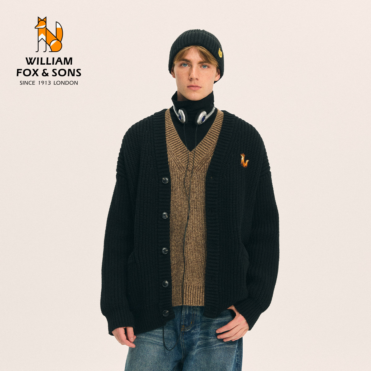 📚 威廉福克斯男装2026春季新款针织开衫男士黑色慵懒针织衫毛衣男款