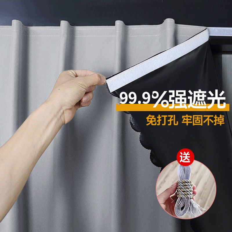 📚 简易自粘一拉即黑全遮光窗帘布免打孔魔术贴安装卧室遮阳2025新款