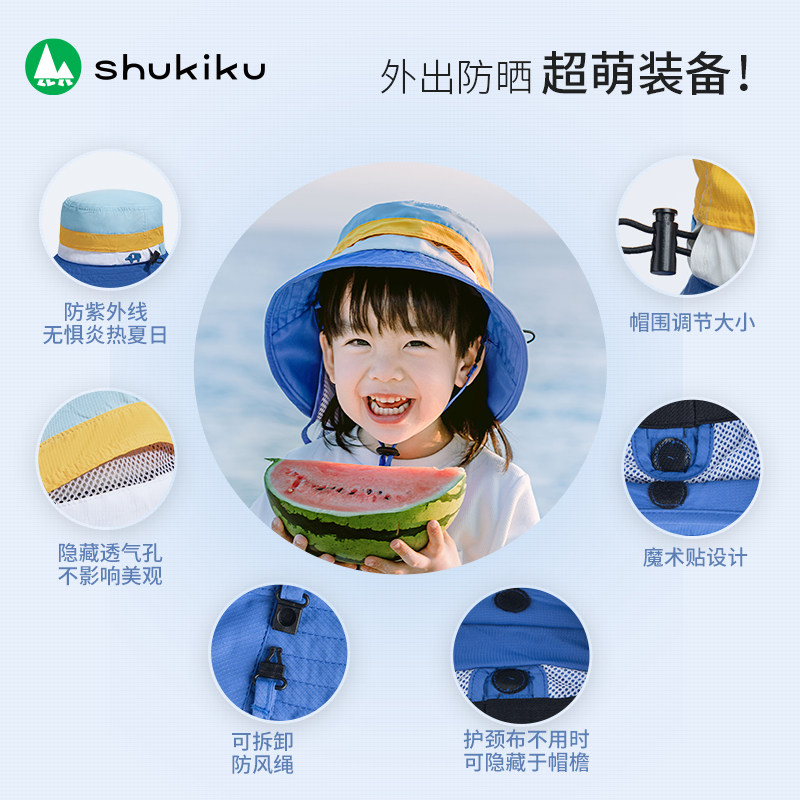 📚 shukiku儿童春夏防晒遮阳渔夫帽透气防紫外线UV男女宝宝太阳帽子