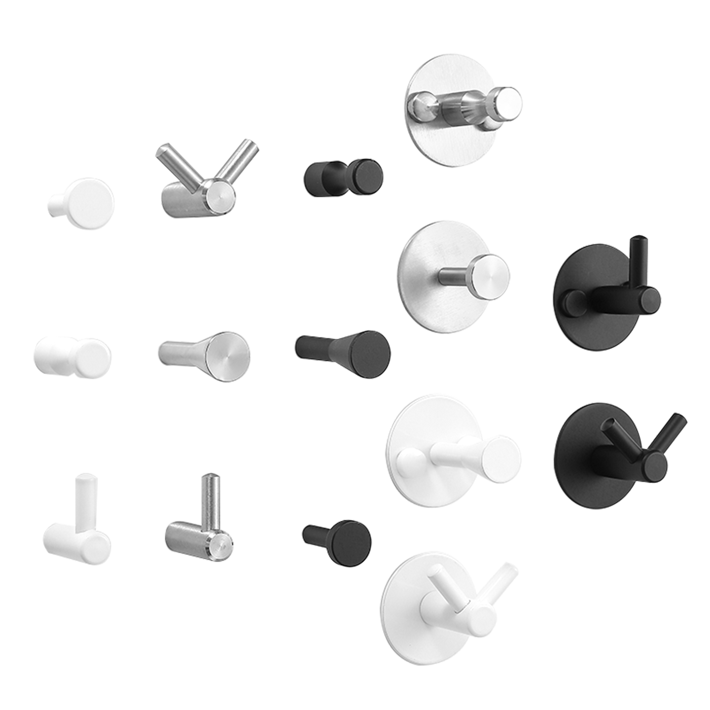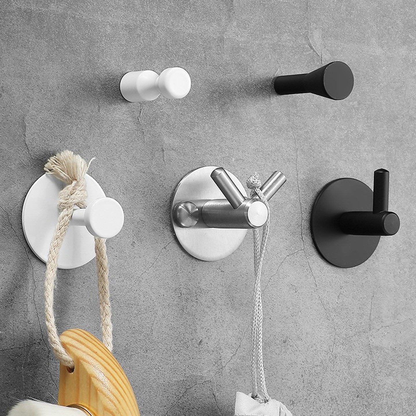 📚 打孔壁挂不锈钢实心衣钩挂钩厨房浴室玄关小单个白黑免打孔钥匙钩