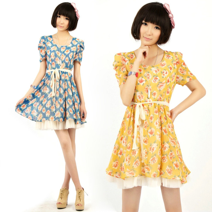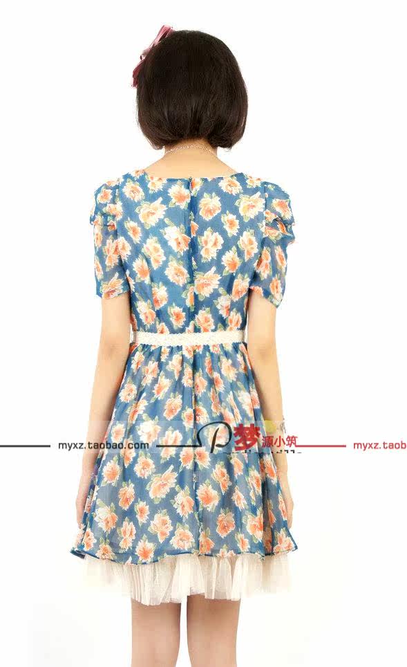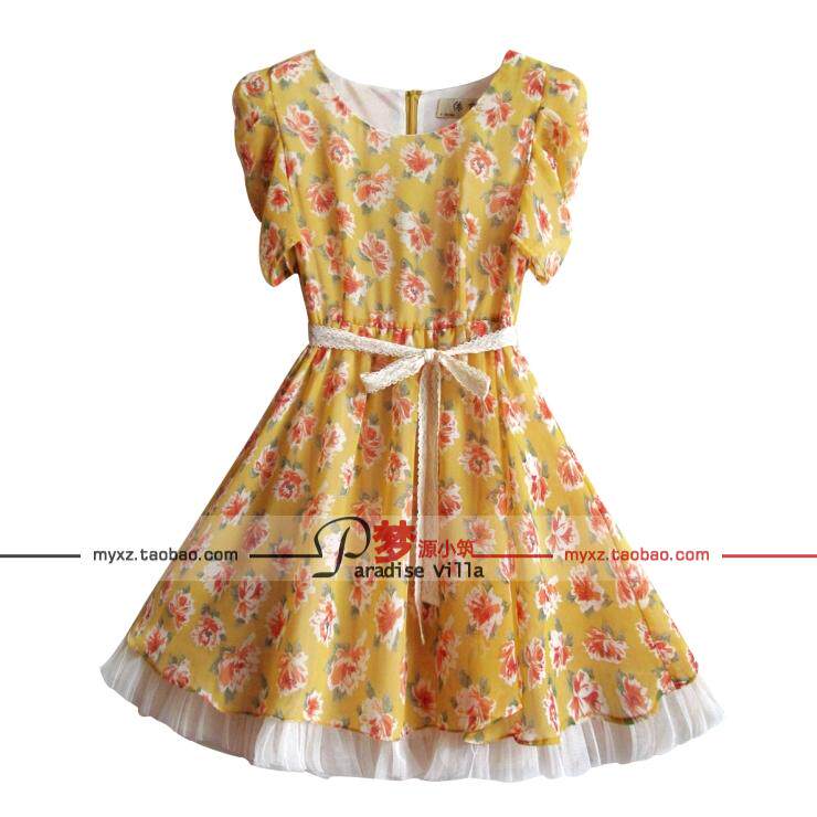 📚 清仓秒杀品牌撤柜依系列甜美复古蔷薇山茶花朵大摆腰带雪纺连衣裙