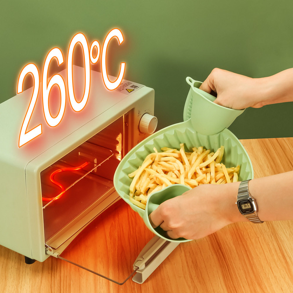 📚 空气炸锅硅胶烤盘圆形蛋糕模具方形烤盘隔热垫可折叠滤油易清洗