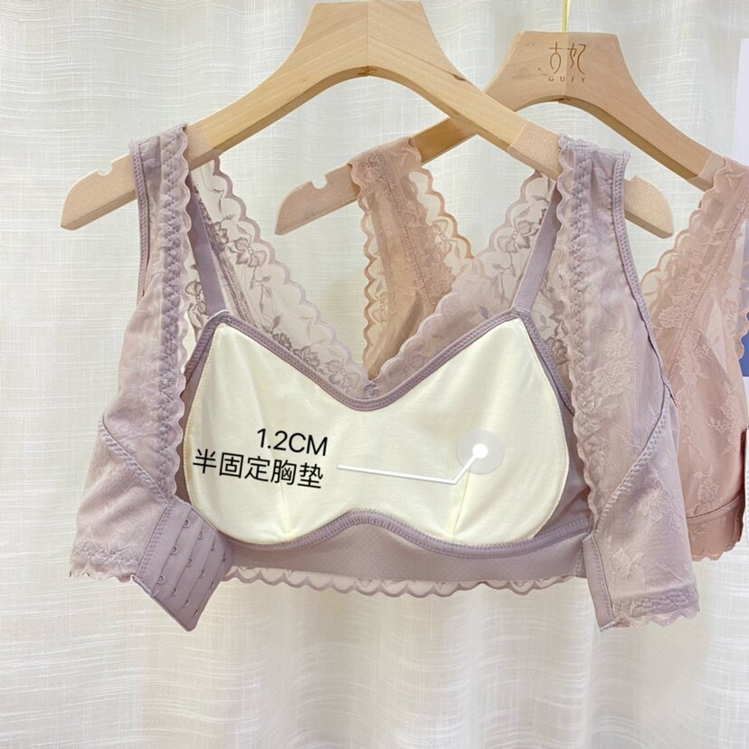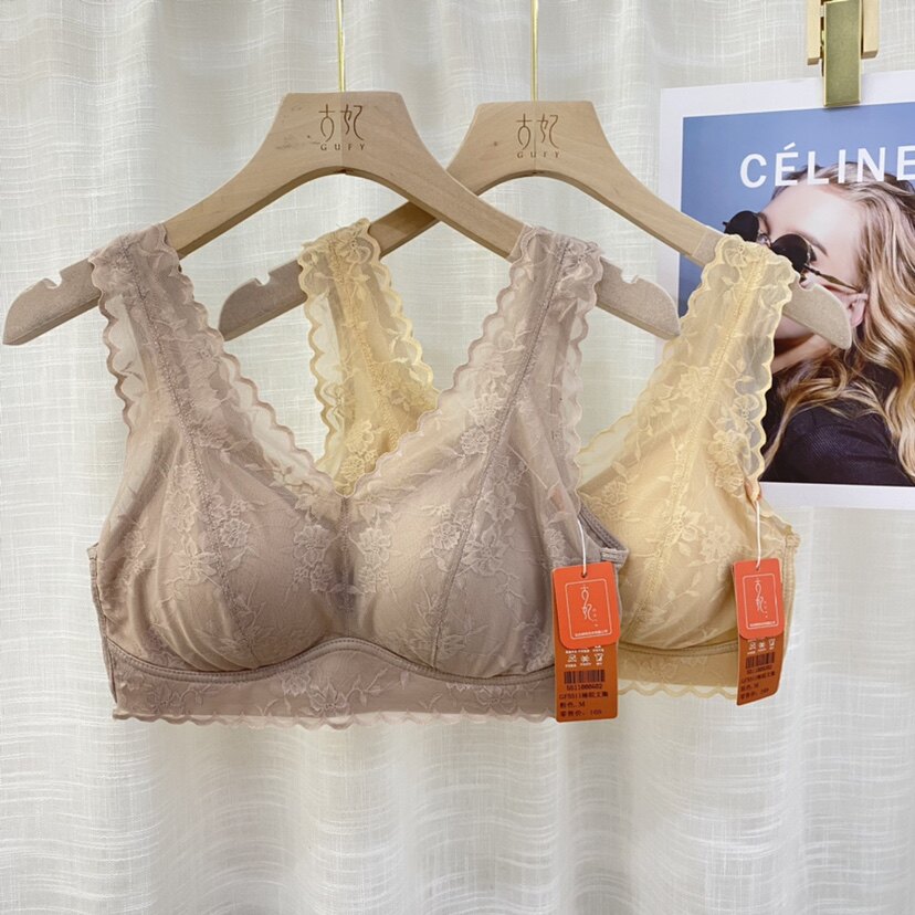 📚 古妃5511薄杯乳胶绵法式蕾丝健康养护内衣无钢圈无侧骨文胸罩女