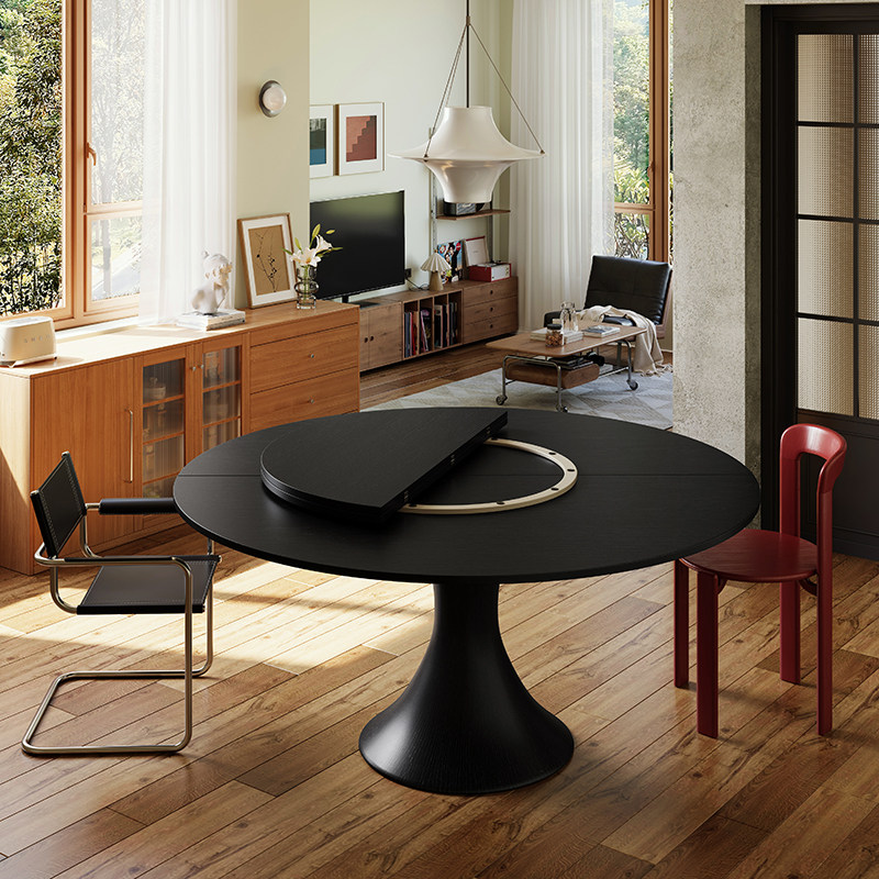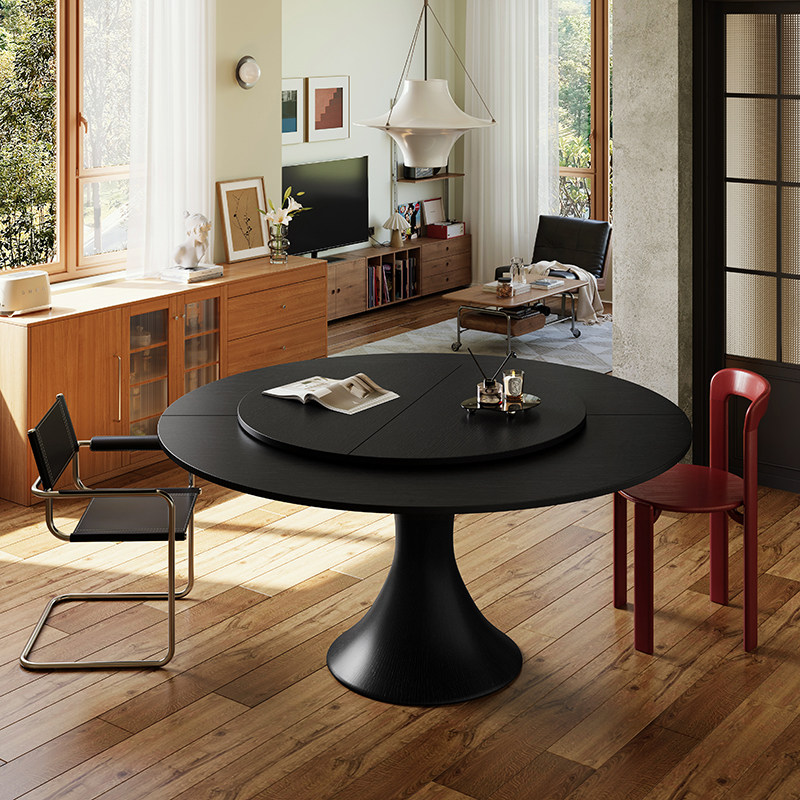 📚 黑色新款上市四分可折叠圆桌面台面板餐桌圆形家用大圆桌子15人20
