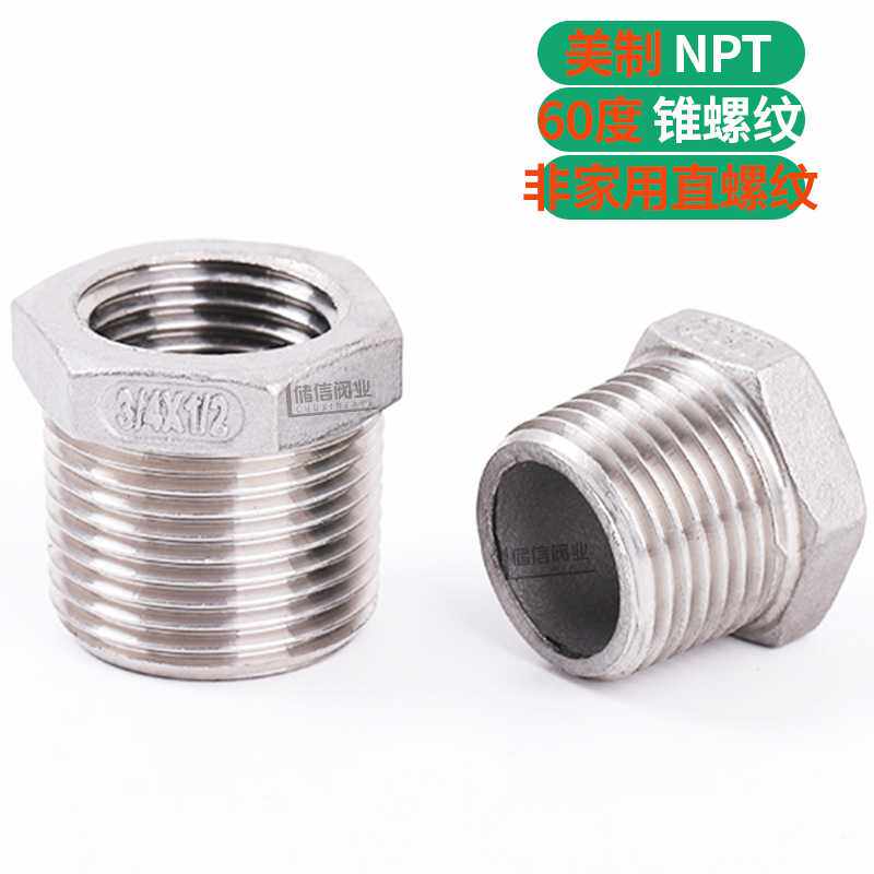 📚 304不锈钢补芯接头SUS304NPT美制60度锥螺纹内外丝变径1寸5转2分