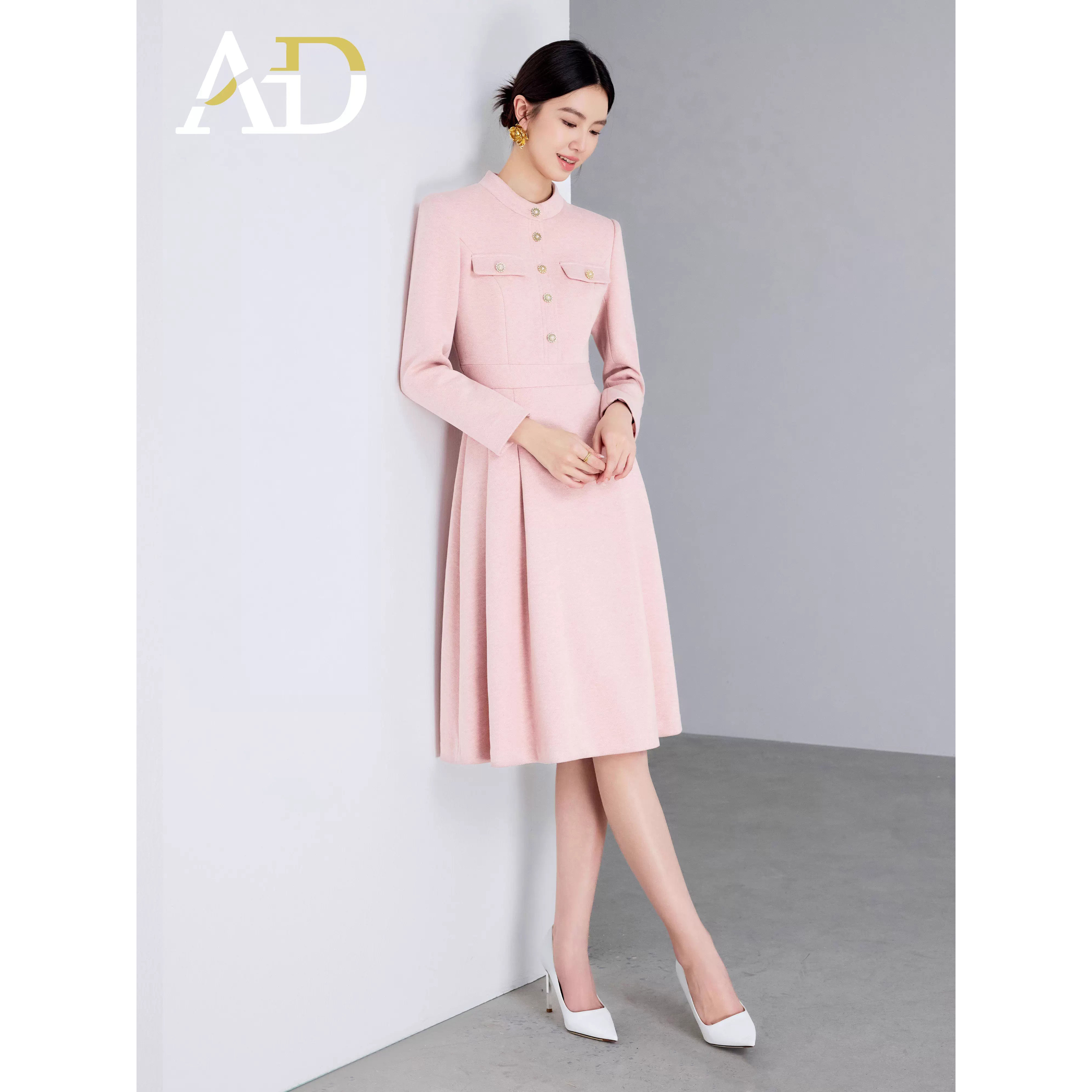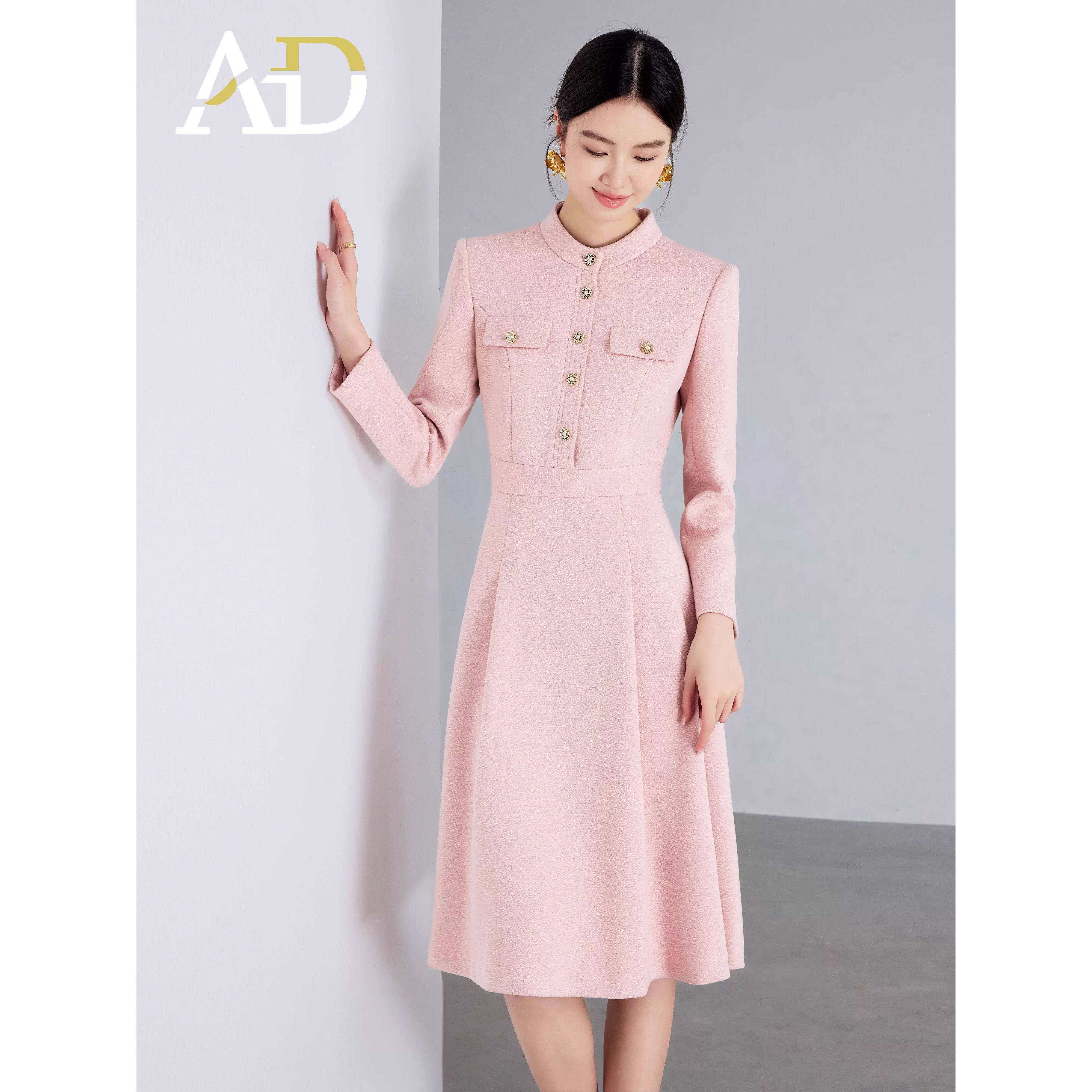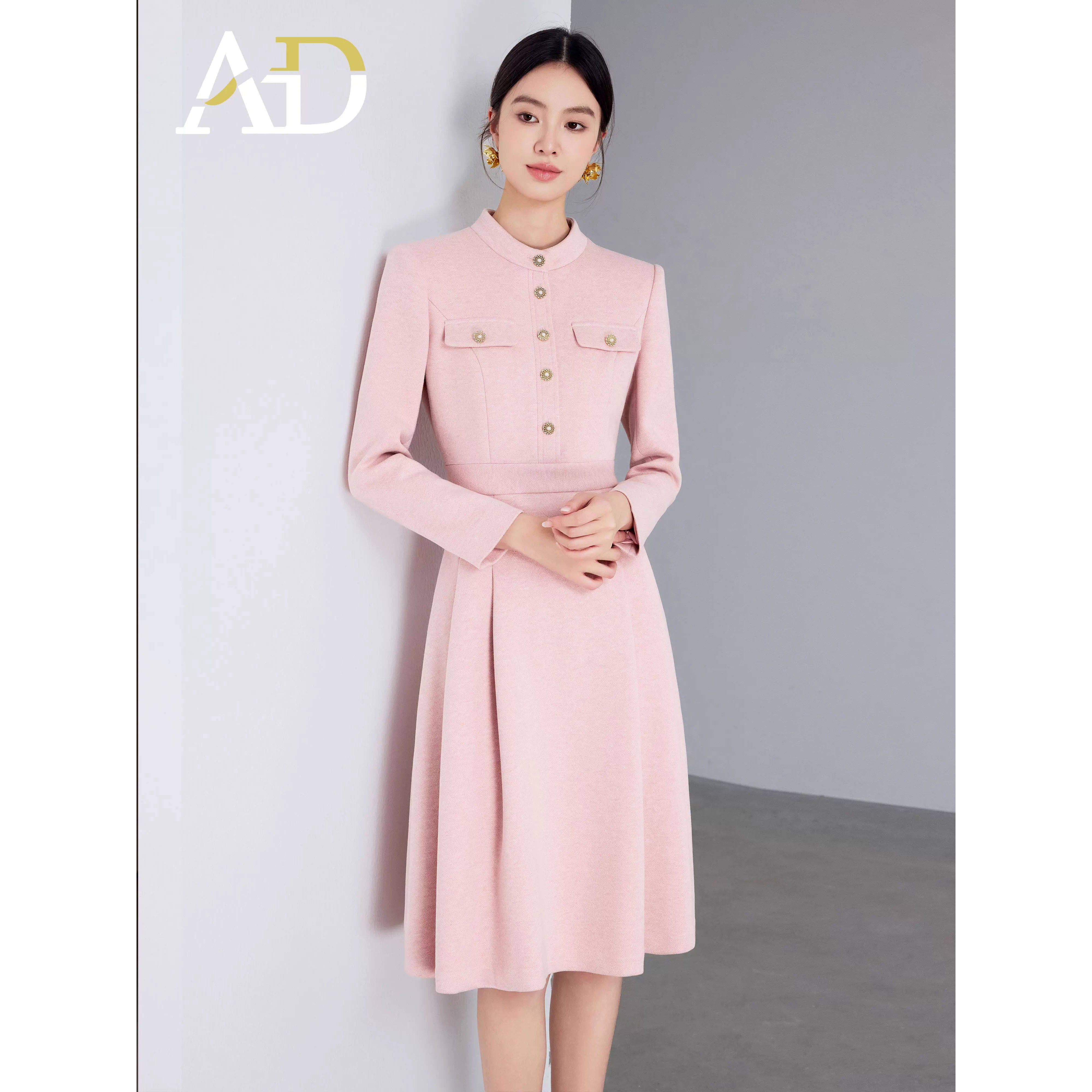 📚 AD秋冬羊毛呢子连衣裙女时尚通勤加厚职业裙子气质粉色名媛西装裙