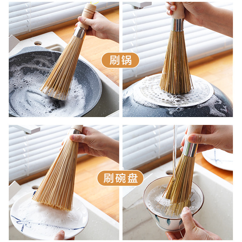 📚 刷锅神器手工竹刷子老式炊帚洗锅的锅刷家用厨房不沾油清洁工具