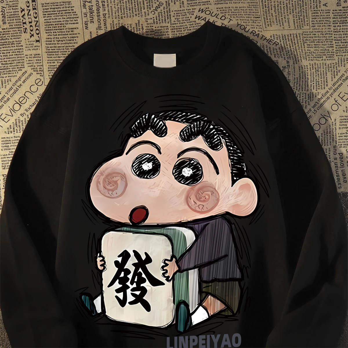📚 日系复古麻将蜡笔小新加绒卫衣男女秋冬款慵懒风oversize潮牌外套