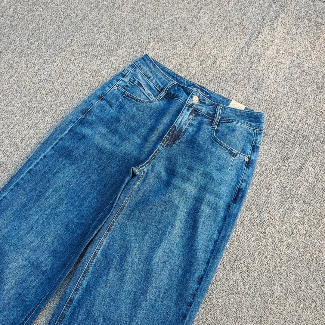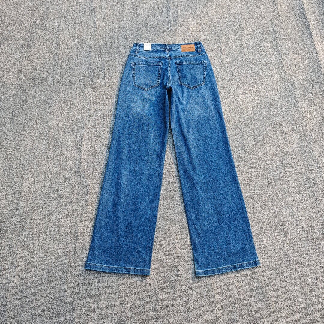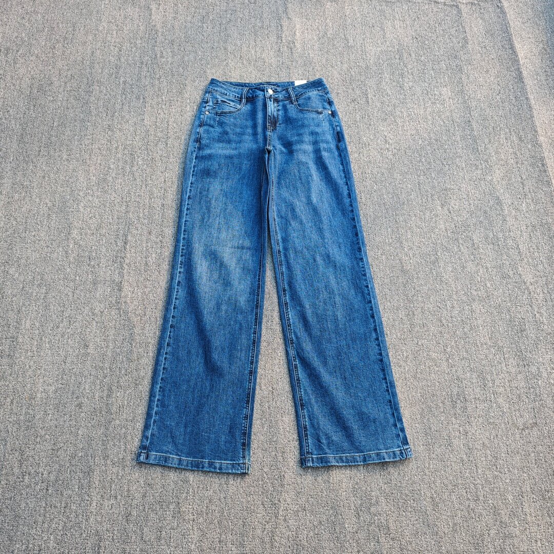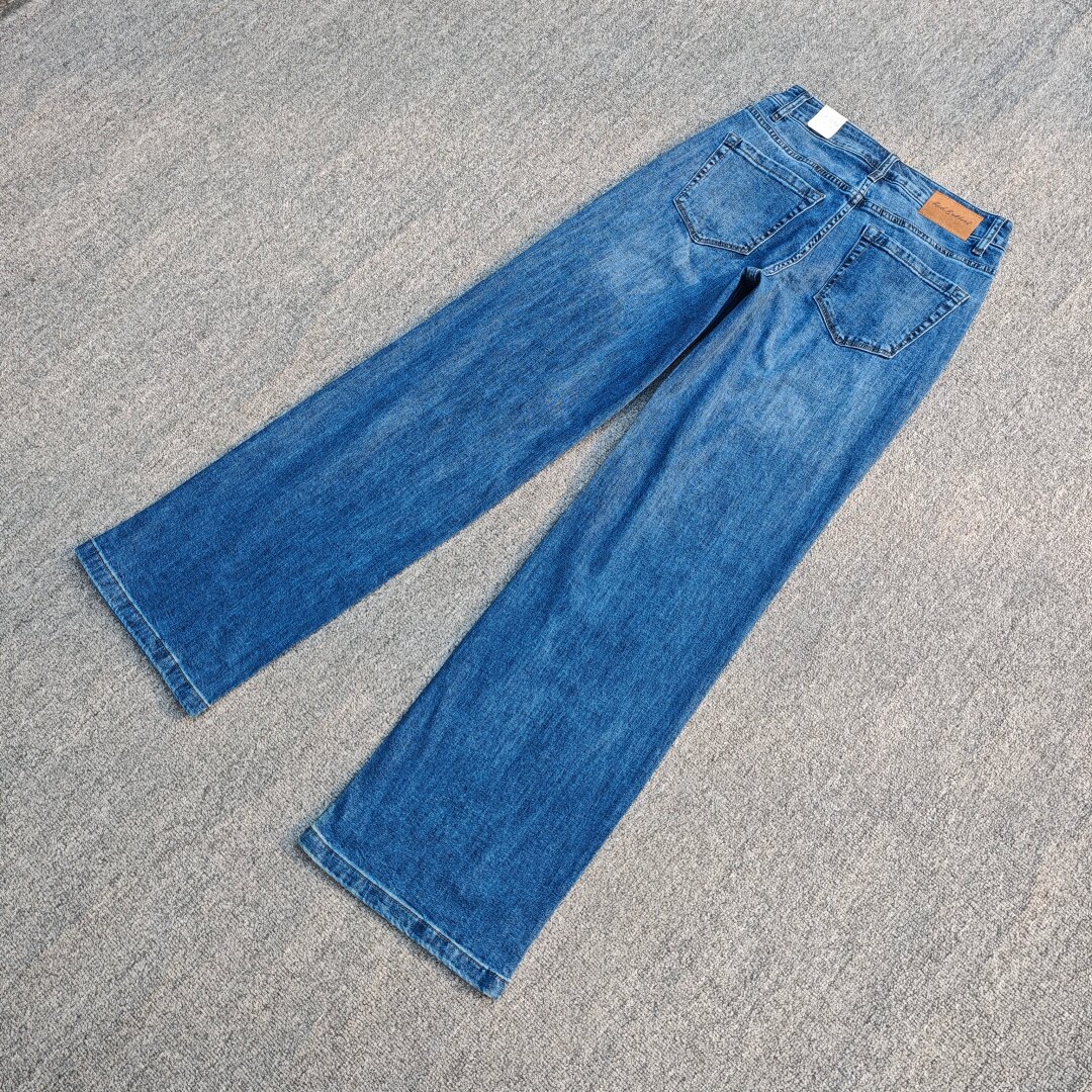 📚 欧美单高腰牛仔裤弹力棉宽松直筒裤洗水磨白大码加长女窄版阔腿裤