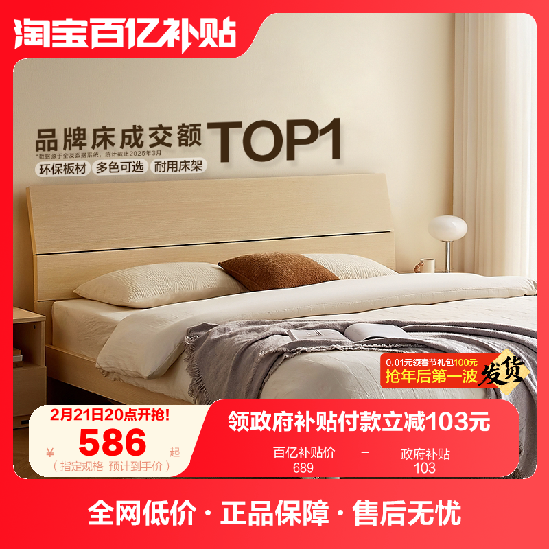 📚 全友家居现代简约主卧室1米8双人大床出租房屋小户型1.5m单人床架