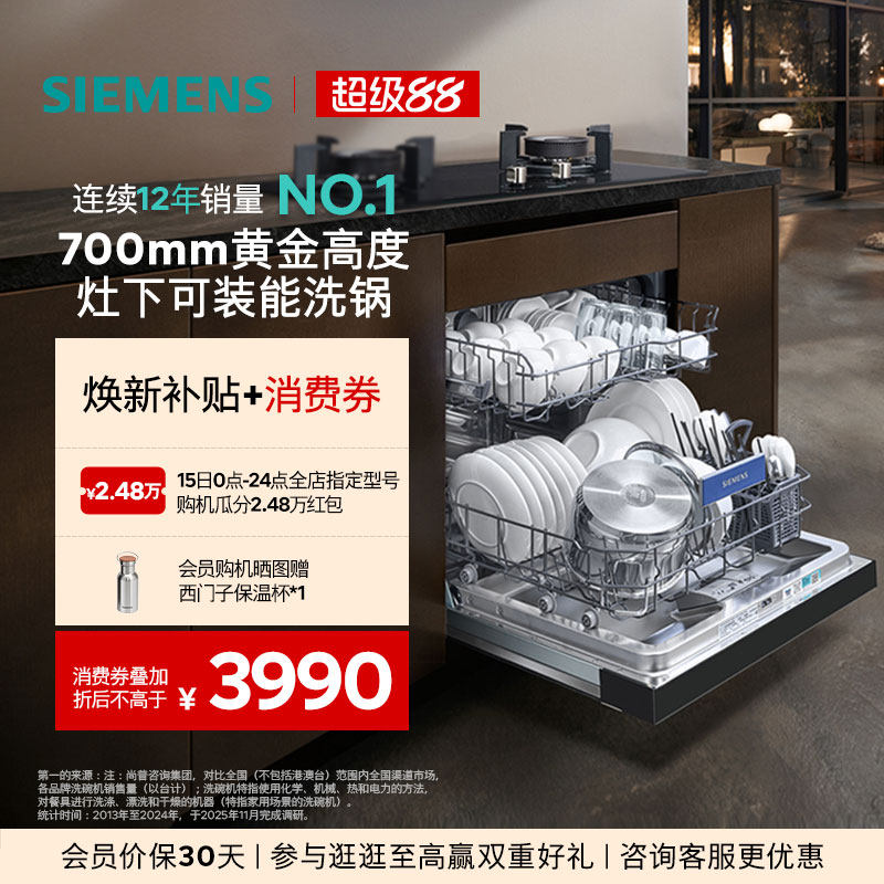 💥种草!西门子14套嵌入式灶下洗碗机,小厨房的神器,券后仅9390!