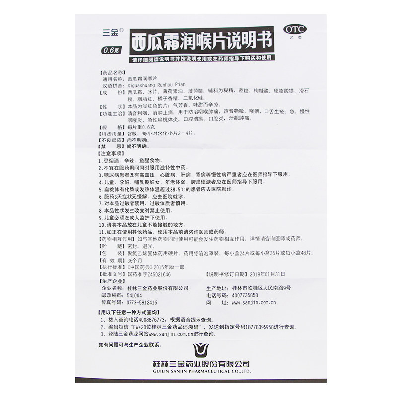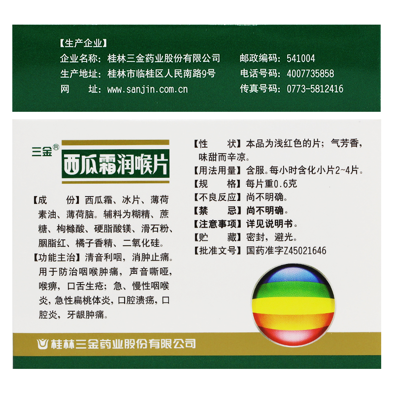 📚 三金西瓜霜润喉片36片咽喉肿痛声音嘶哑口腔溃疡急慢性咽喉炎桂林