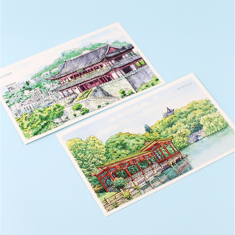 📚 手绘福州明信片10张文创礼物卡片摄影款西禅寺中洲岛三坊七巷贺卡