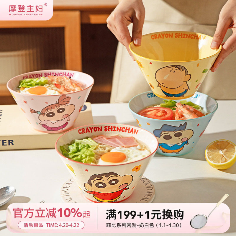 📚 【摩登主妇&蜡笔小新】泡面碗家用2026新款餐具斗笠碗拉面碗汤碗