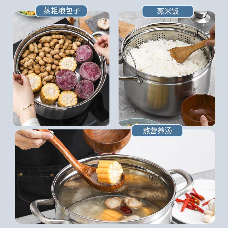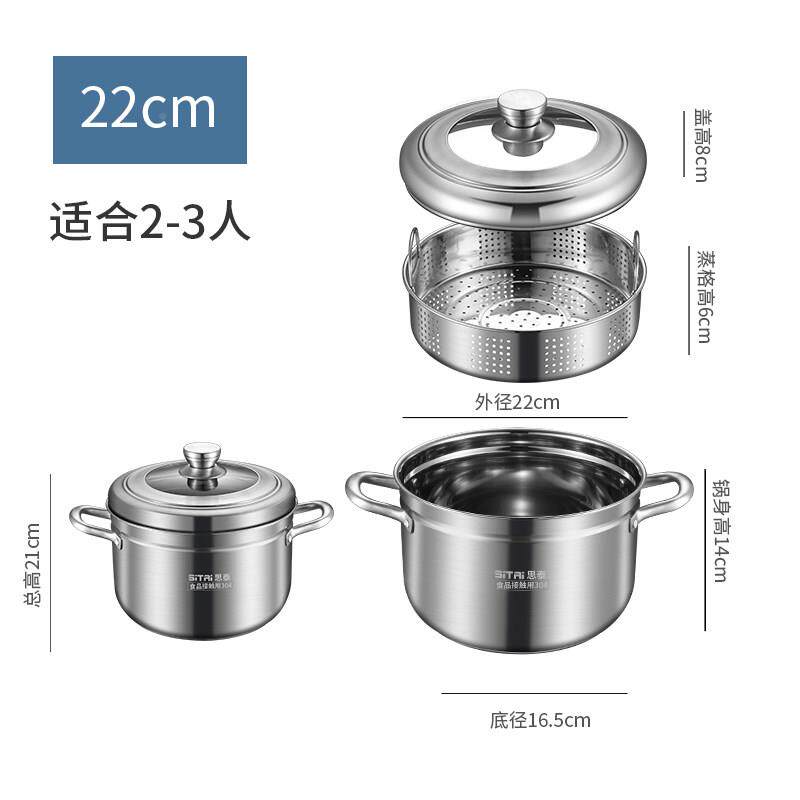 📚 3思泰16小蒸锅家用304不锈钢加厚锅两用小电号层蒸锅功多能隔水蒸