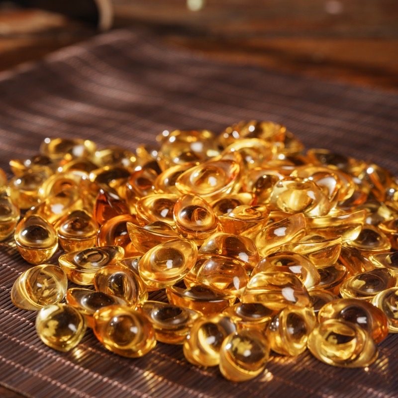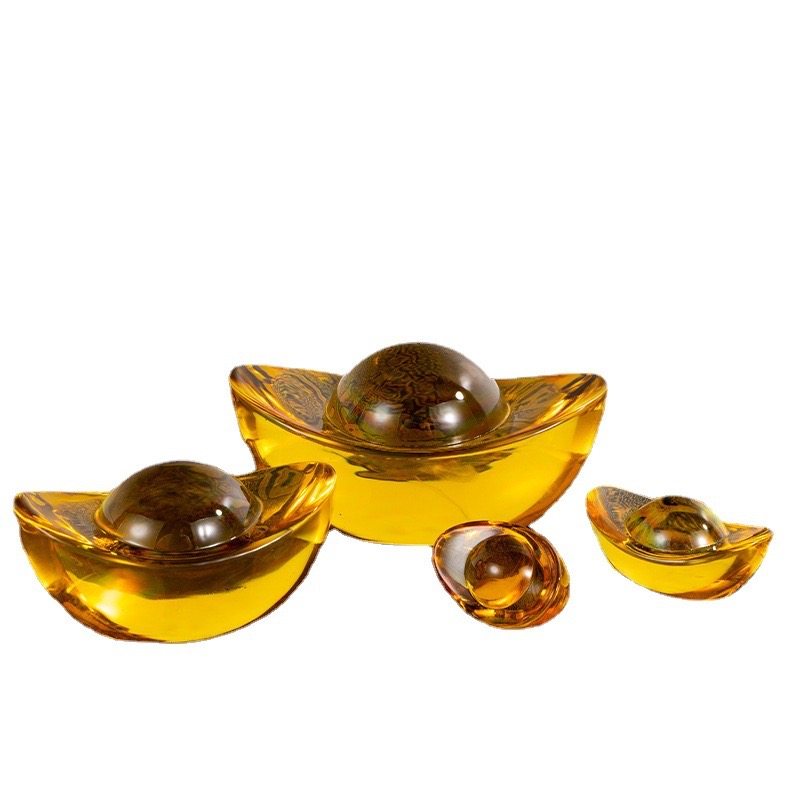 📚 黄水晶元宝摆件小元宝琉璃大号金元宝招财聚宝盆碎石装饰乔迁礼品