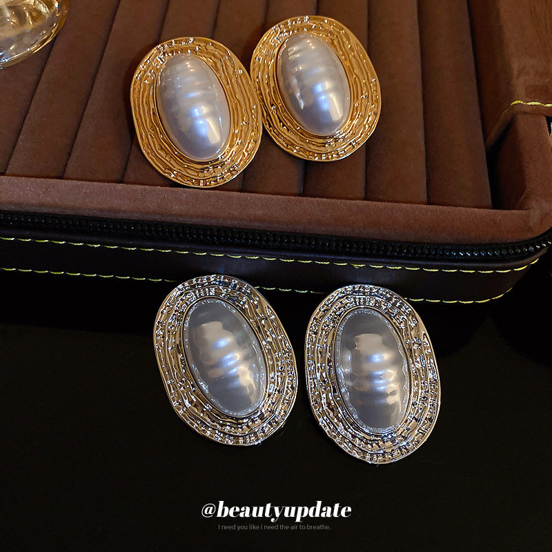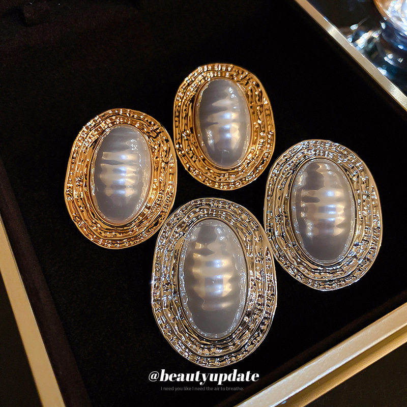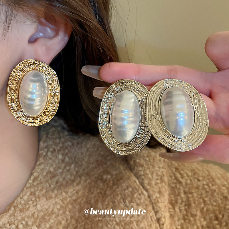 📚 女神蒙上眼唐盈盈辛芷蕾同款银针褶皱条纹椭圆珍珠耳环复古耳钉